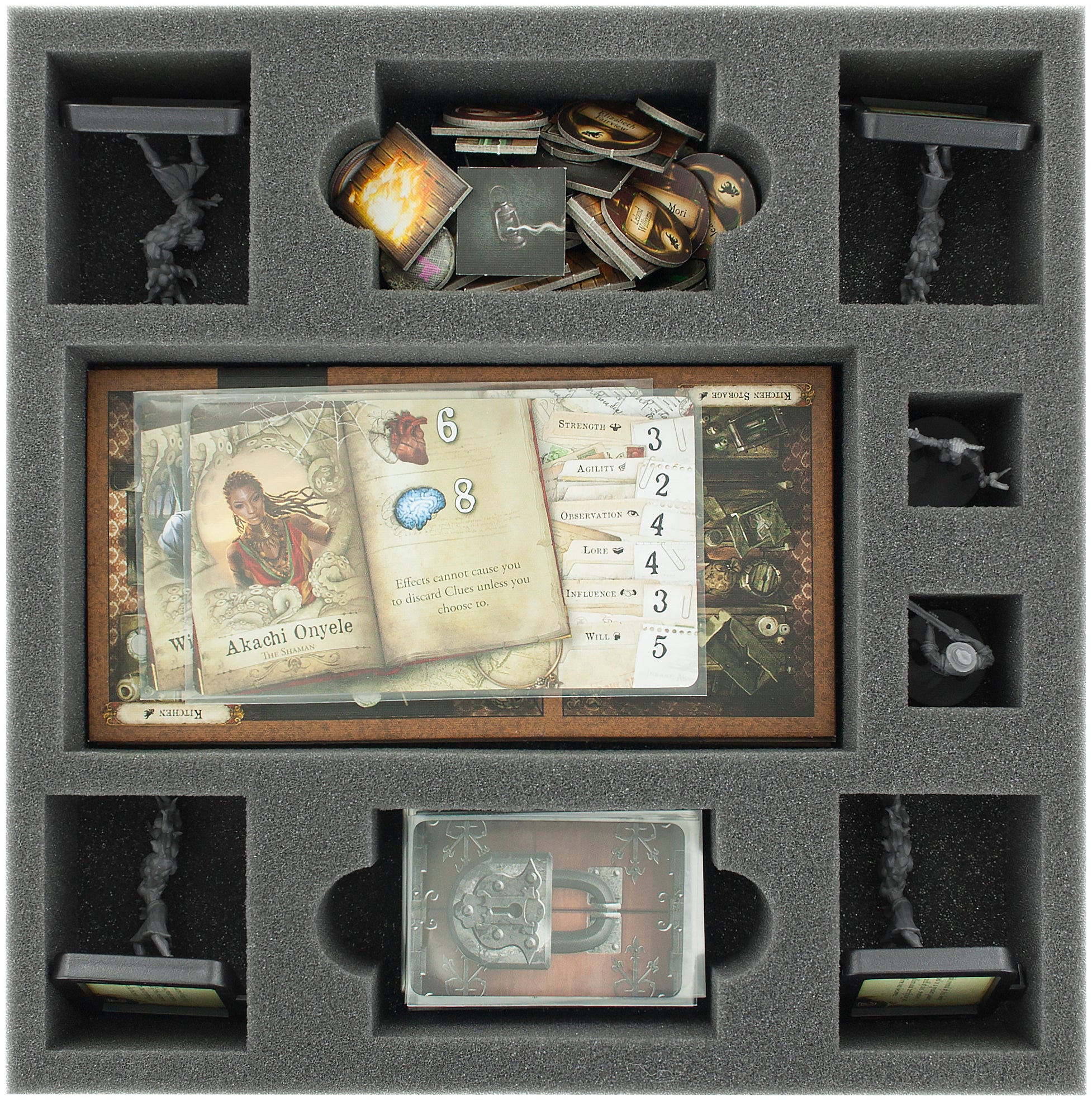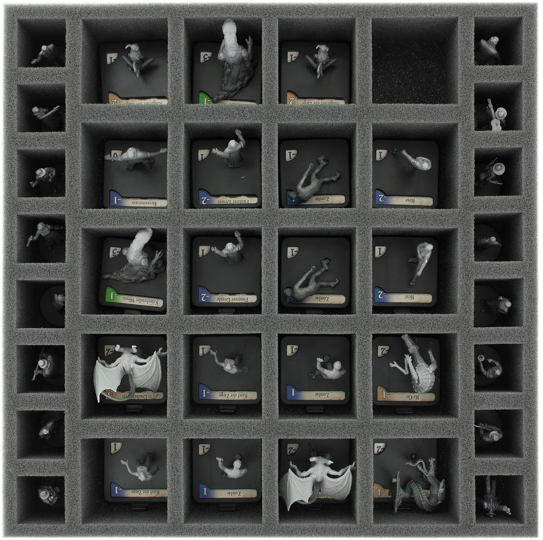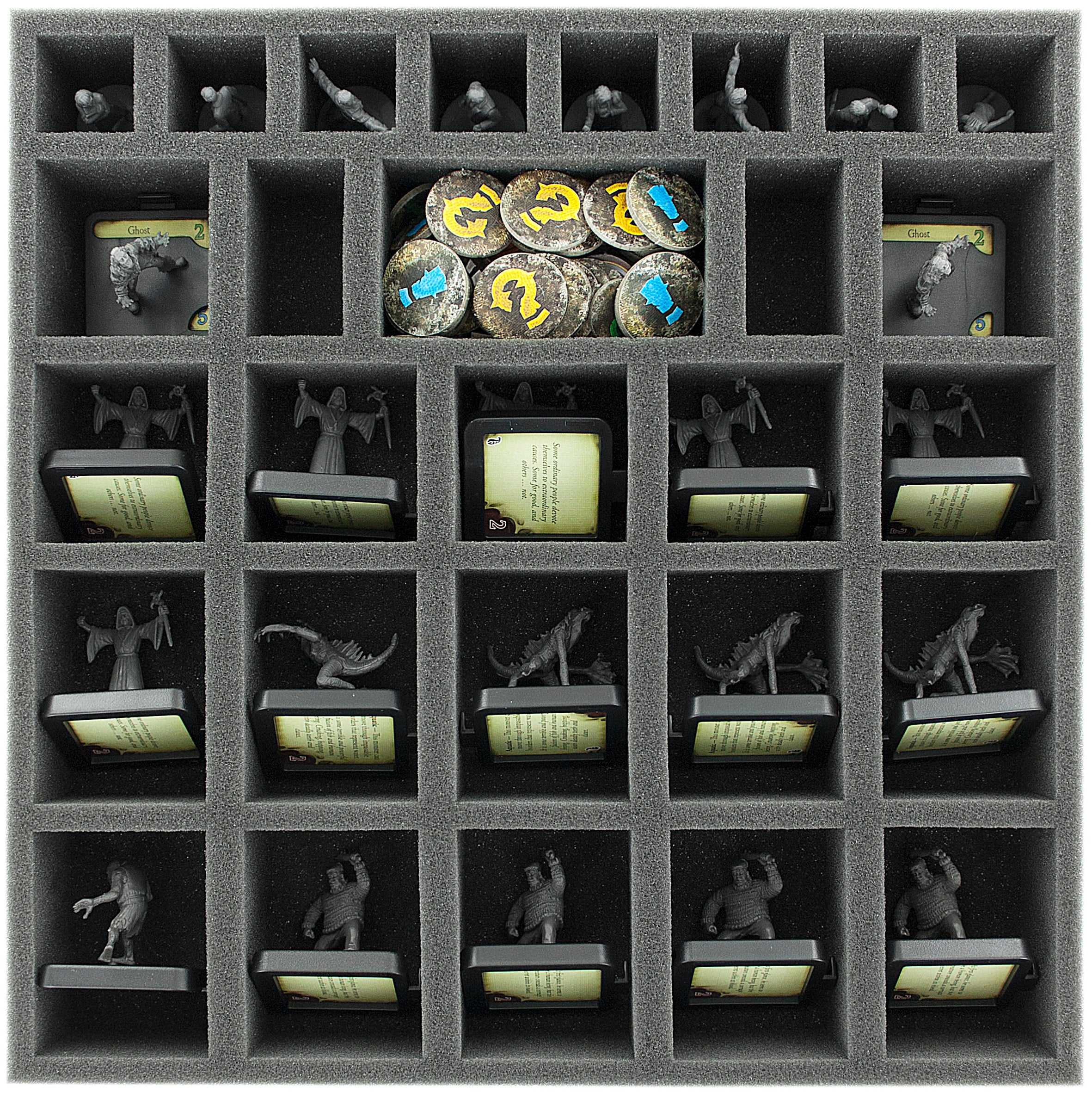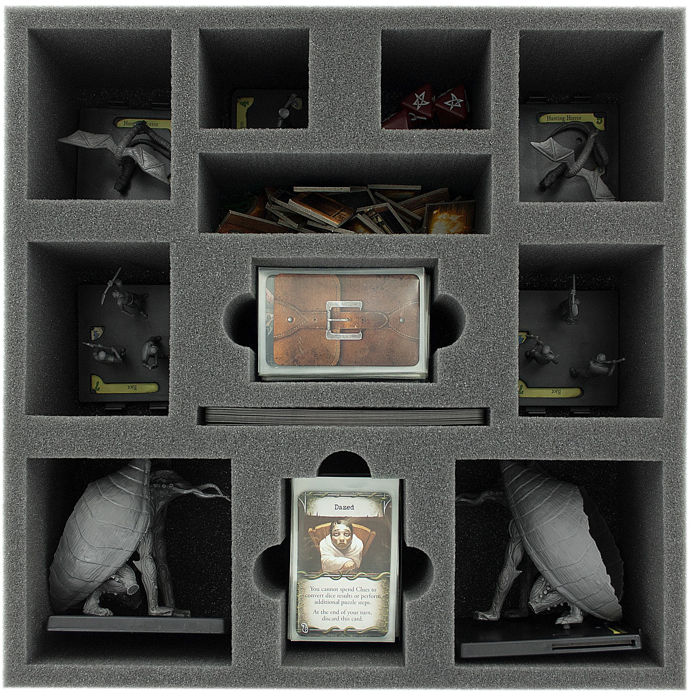 Somit bekommst du alles was du brauchst, um deine Kollektion vernünftig zu verstauen. Die fünf Schaumstoff-Sets helfen dir beim Einsortieren der Miniaturen und des Spielmaterials in den originalen Brettspielboxen.