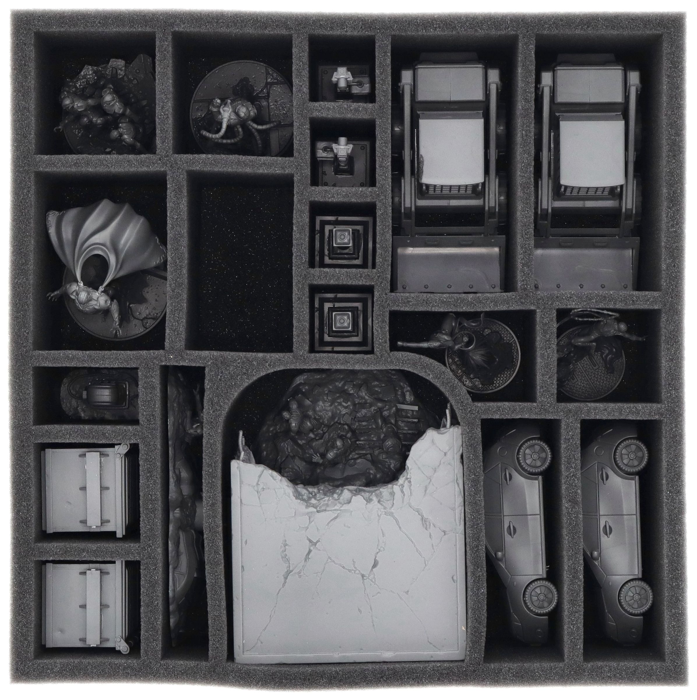 - 1 Schaumstoffeinlage mit 19 Fächern für Helden, Schurken + Geländeteile (AWMFLJ100BO)
