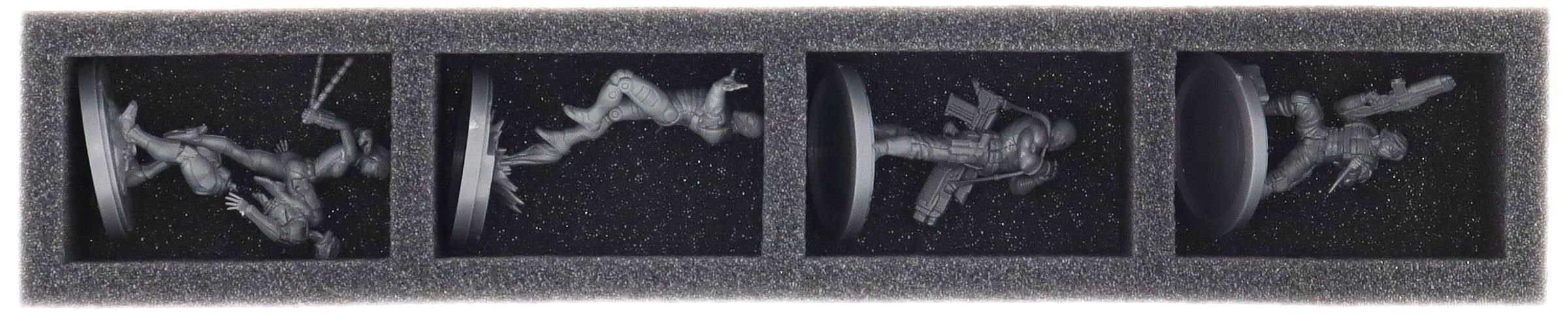Die vier Schaumstoffeinlagen bieten deinen Modellen einen sicheren Rückzugsort – jede Miniatur erhält ihr eigenes, passgenaues Fach. Eingepackt in weichen Schaumstoff sind selbst empfindliche Details wie die Tentakel von Dr. Oktopus oder Magnetos Mantel zuverlässig geschützt. Bemalte Figuren bleiben frei von Kratzern und Abrieb.