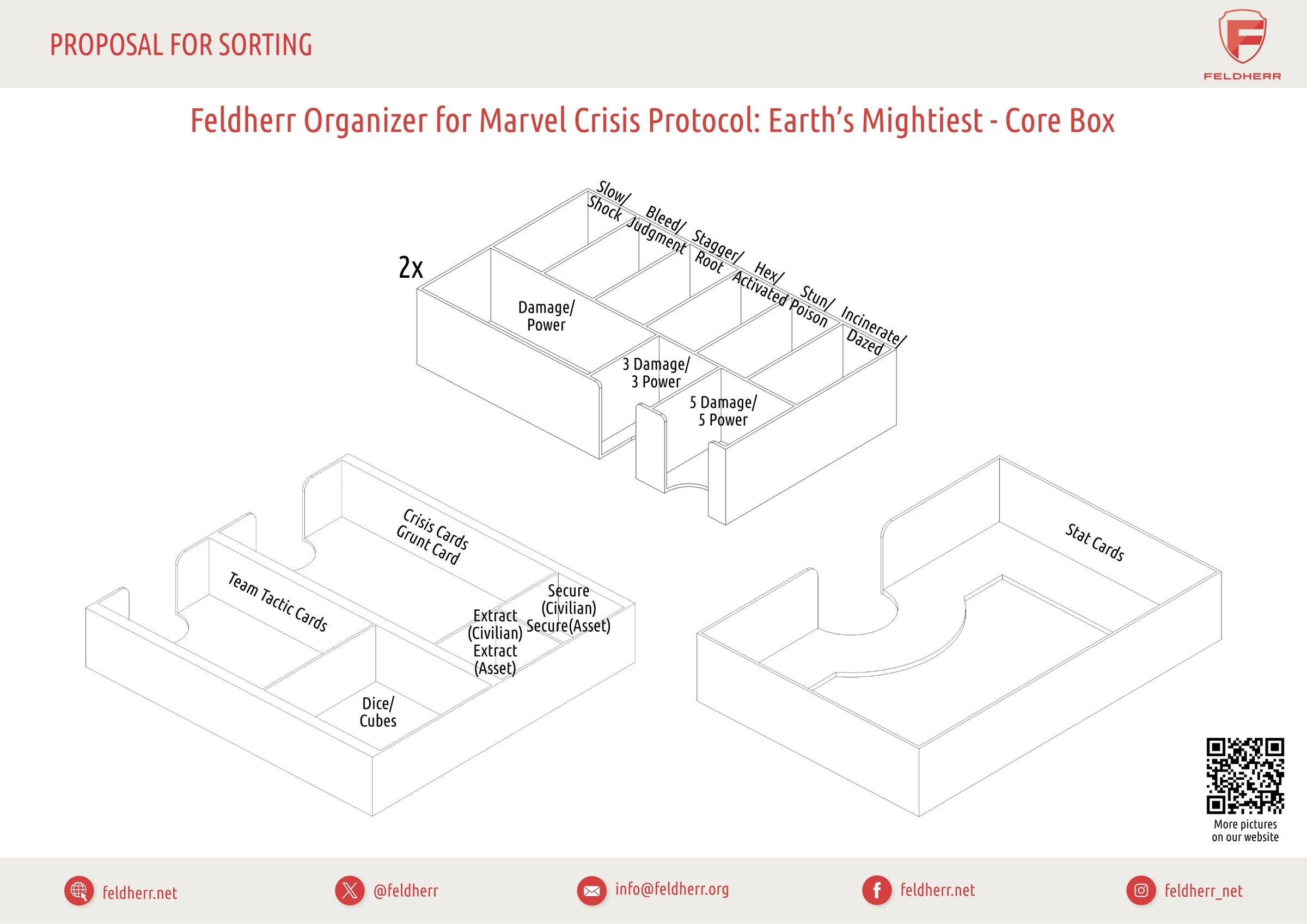 - Das Set passt exakt in die originale Brettspielbox des "Marvel: Crisis Protocol - Die Mächtigsten der Welt" (Abmessungen des Sets: 335 x 280 x 135 mm hoch).