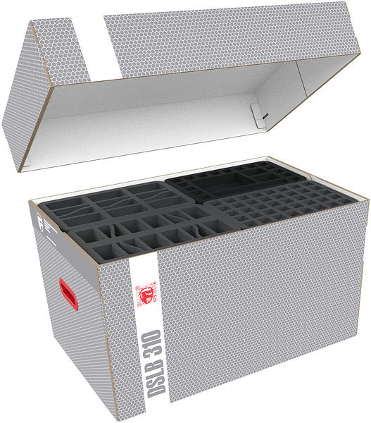 Diese Lagerbox DSLB310 ist randvoll mit passenden Feldherr-Schaumstoffeinlagen gefüllt, um deine Miniaturen zu schützen und dein Spielmaterial ordentlich zu sortieren. So kommen die Fähigkeiten deiner Kämpfer voll zur Geltung und deine Modelle landen nicht schon vor der Schlacht im Lazarett wegen fehlender Gliedmaßen.