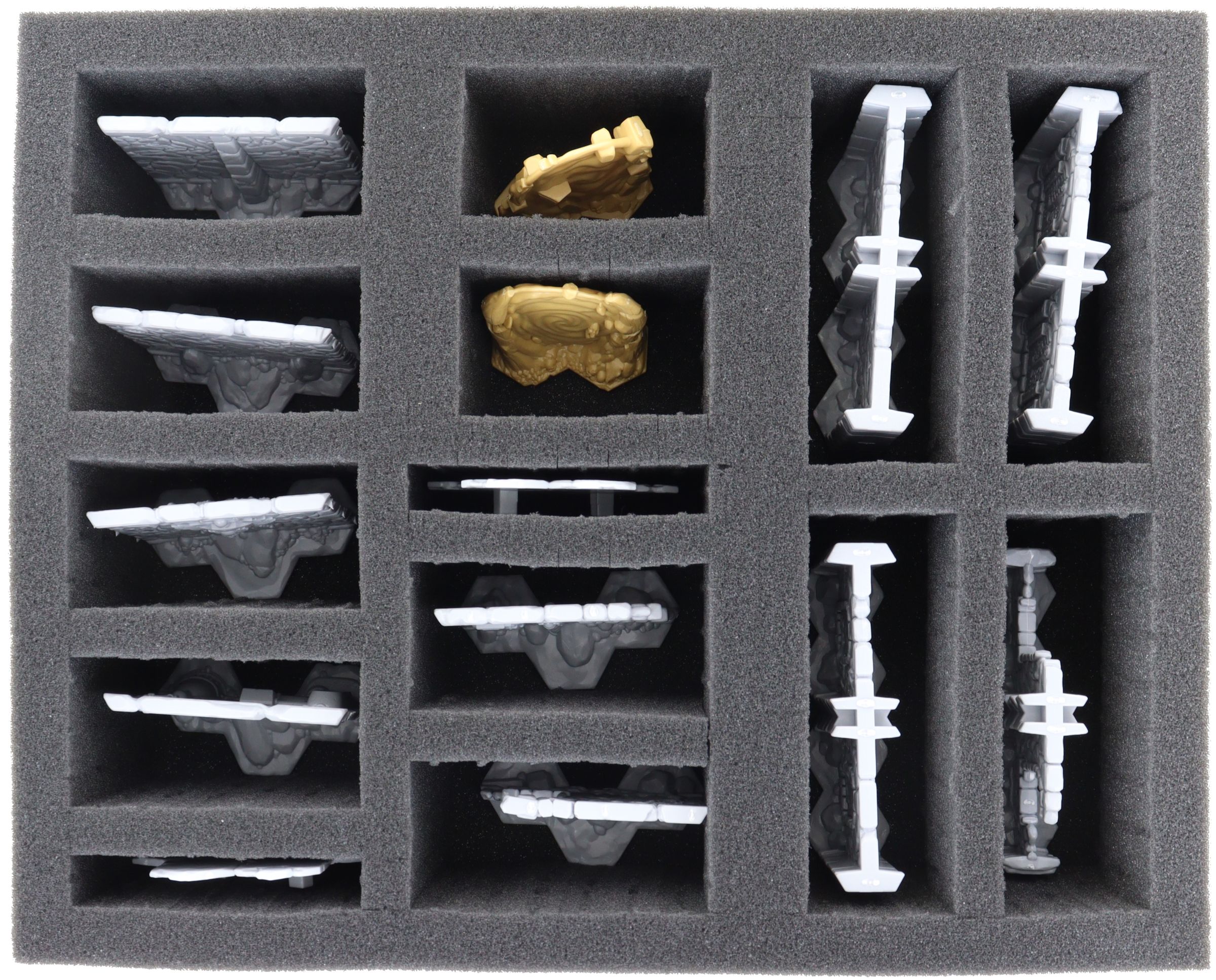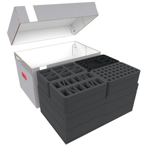 - 1 Full-Size Schaumstoffeinlage mit 12 Fächern für ausladende Miniaturen (FSMEPQ070BO)