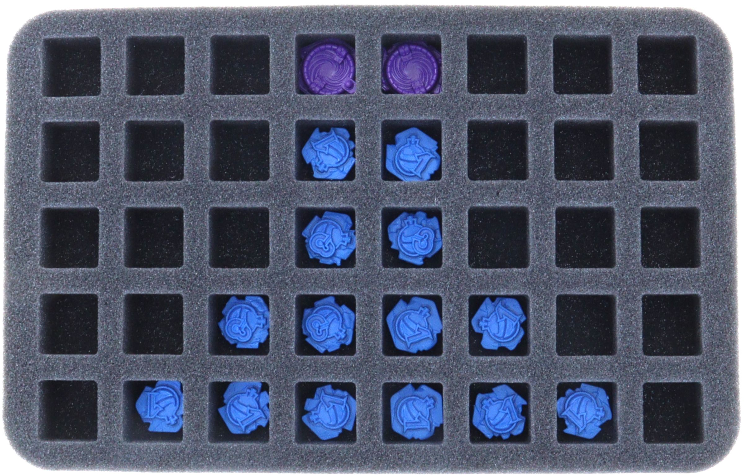 - 1 Half-Size Schaumstoffeinlage mit 40 Fächern für kleinteiliges Spielmaterial wie Token, Würfel etc. (HSMEMO030BO)