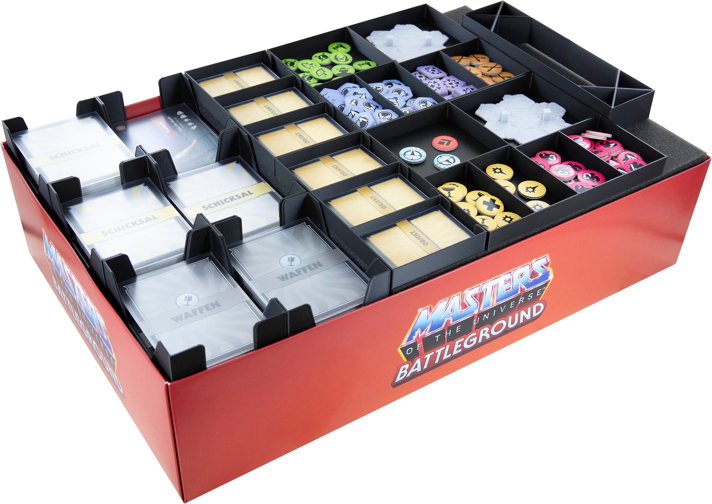 - Der Organizer passt in die originale Grundspielbox von „Masters of the Universe: Battleground.“