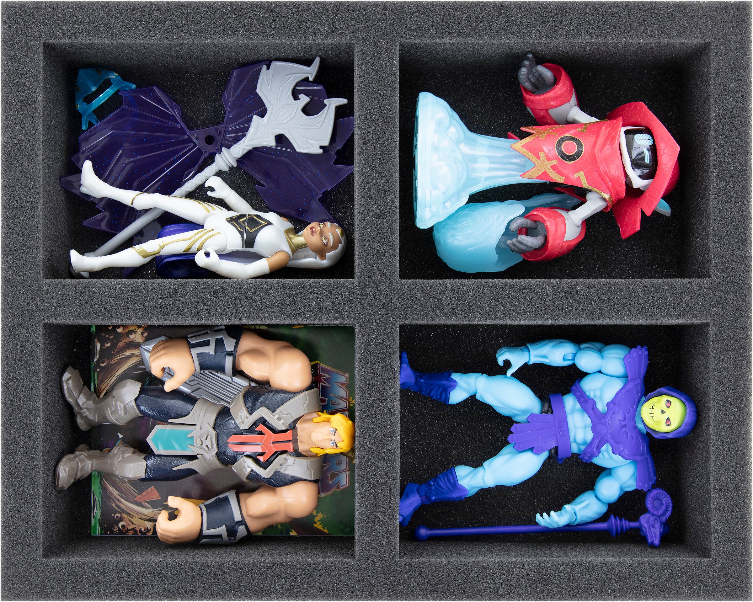 Egal ob Vintage oder Brandneu - diese Feldherr Schaumstoffeinlage ist ideal um He-Man, She-Ra und Skeletor kratzerfrei aufzubewahren. Deine Helden und Schurken haben hier 4 eigene Fächer in denen die Figuren von Mattel sicher verpackt sind.