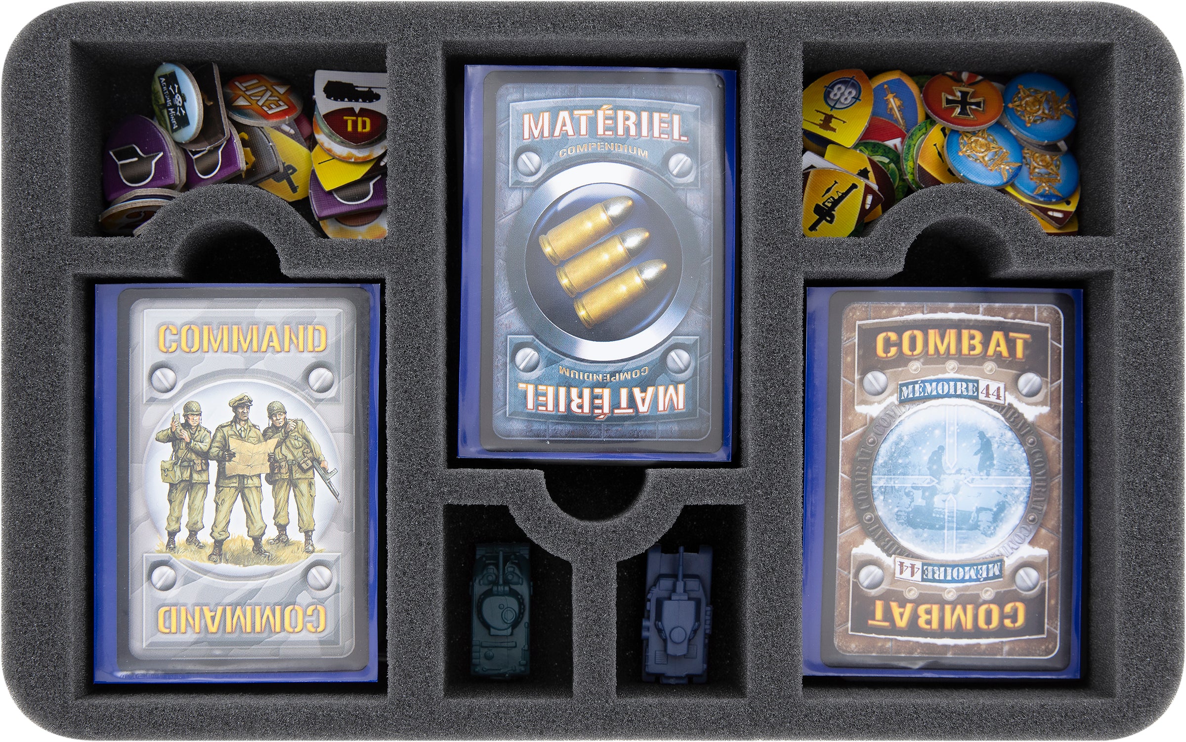 - 1 Half-Size-Schaumstoffeinlage mit 7 Fächern für Karten, Token und Würfel (HSMEQO050BO)