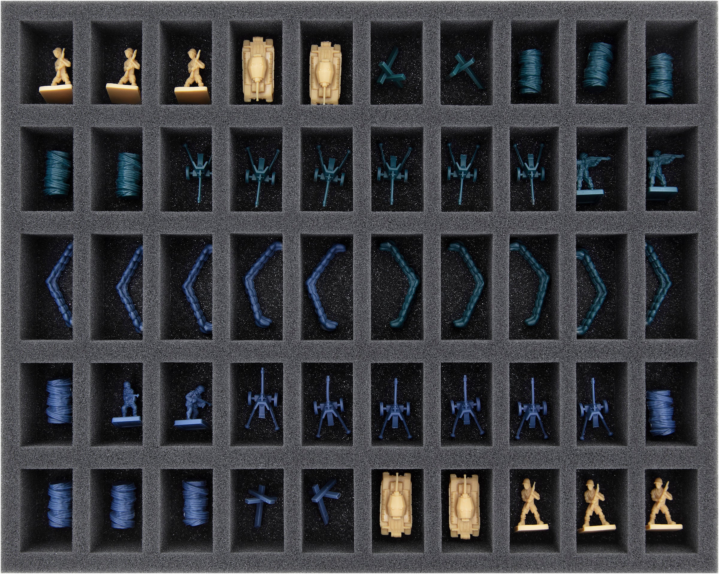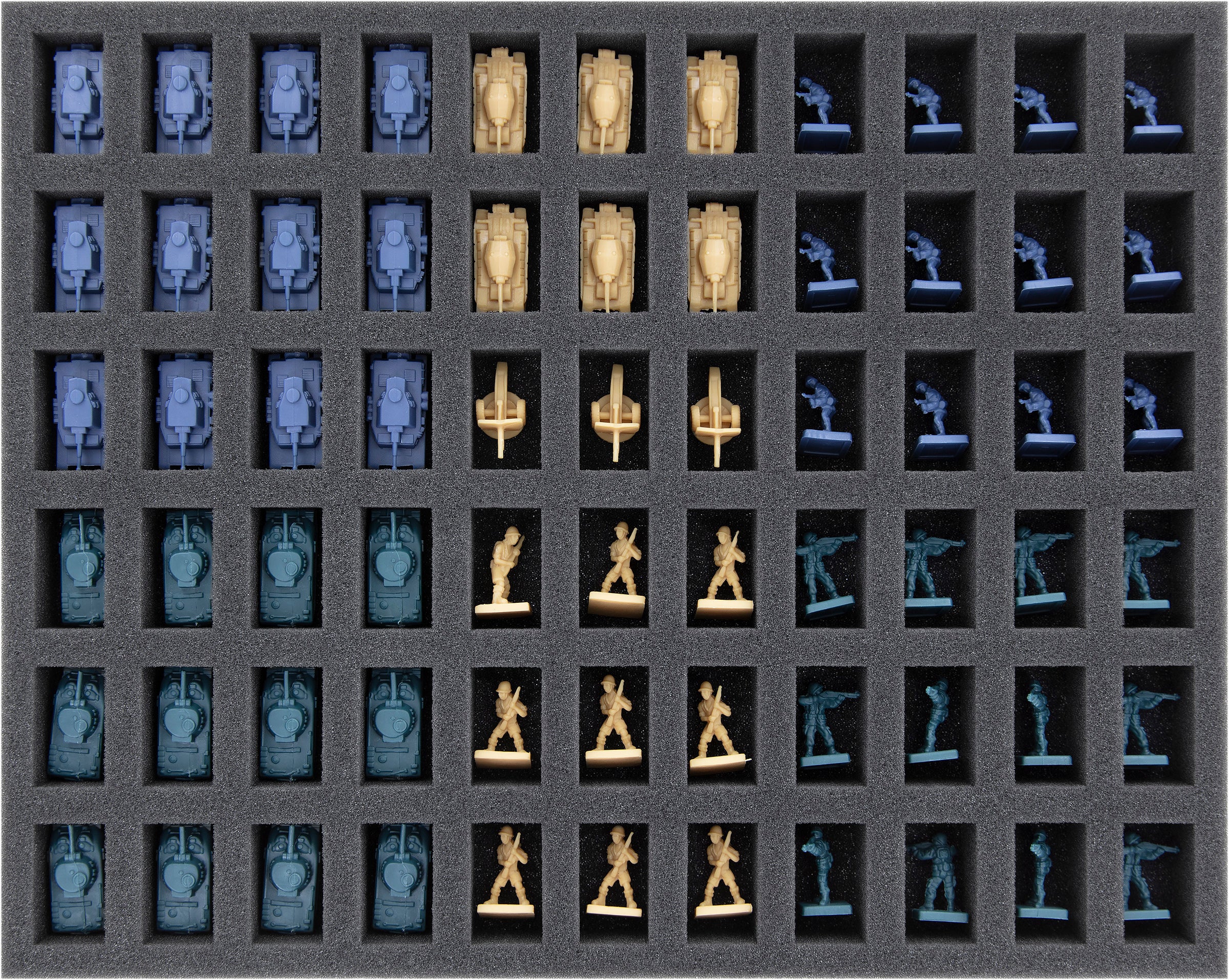 - 1 Full-Size-Schaumstoffeinlage mit 50 Fächern für Infanterie, Artillerie, Stacheldraht, Panzersperren und Sandsäcke (FSEB035BO)