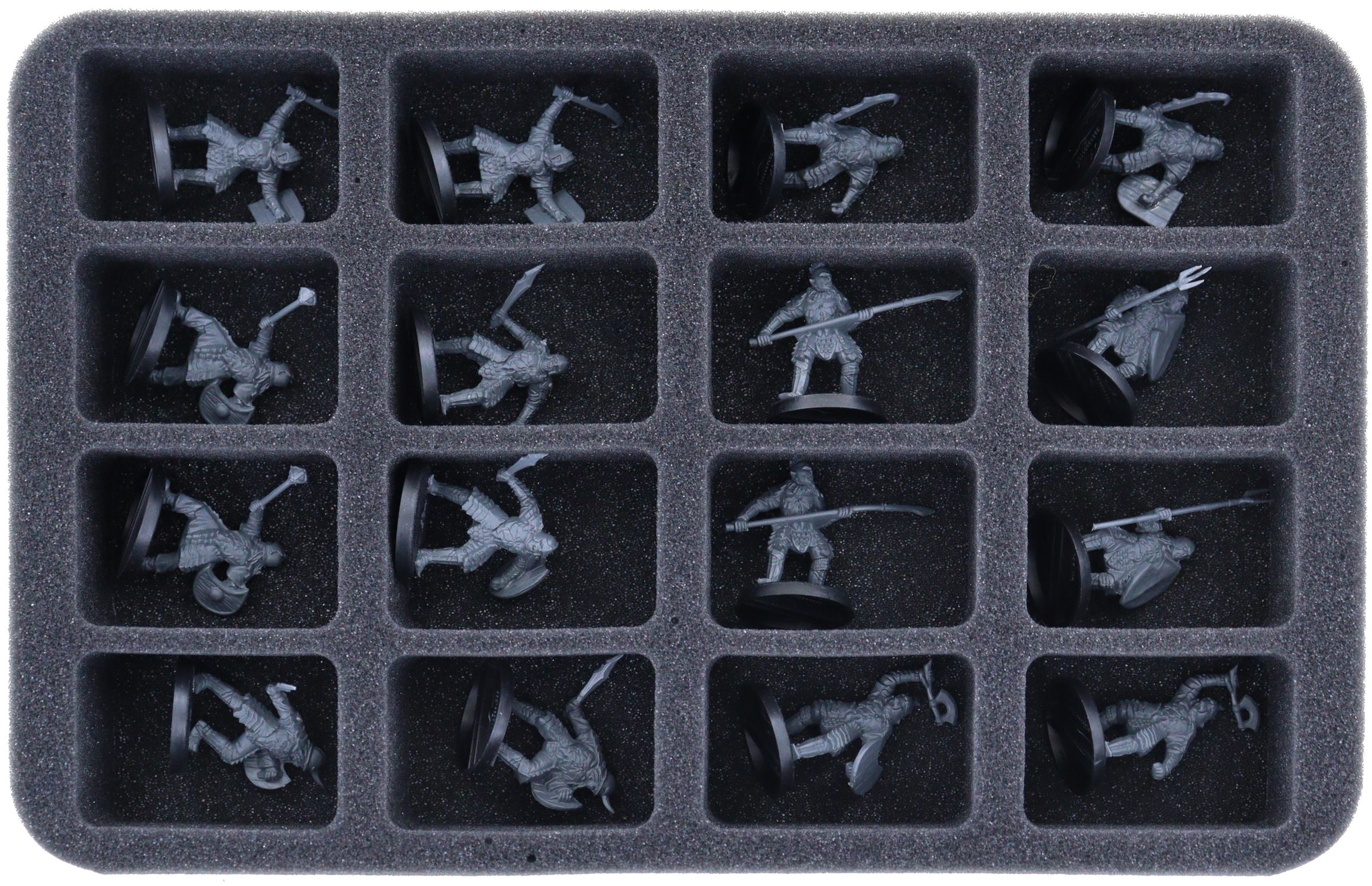- 2 Half-Size Schaumstoffeinlagen mit jeweils sechzehn Fächern für Faramir, Damrod, Madril, Krieger aus Minas Tirith und Waldläufer aus Gondor (HS040BF05BO)