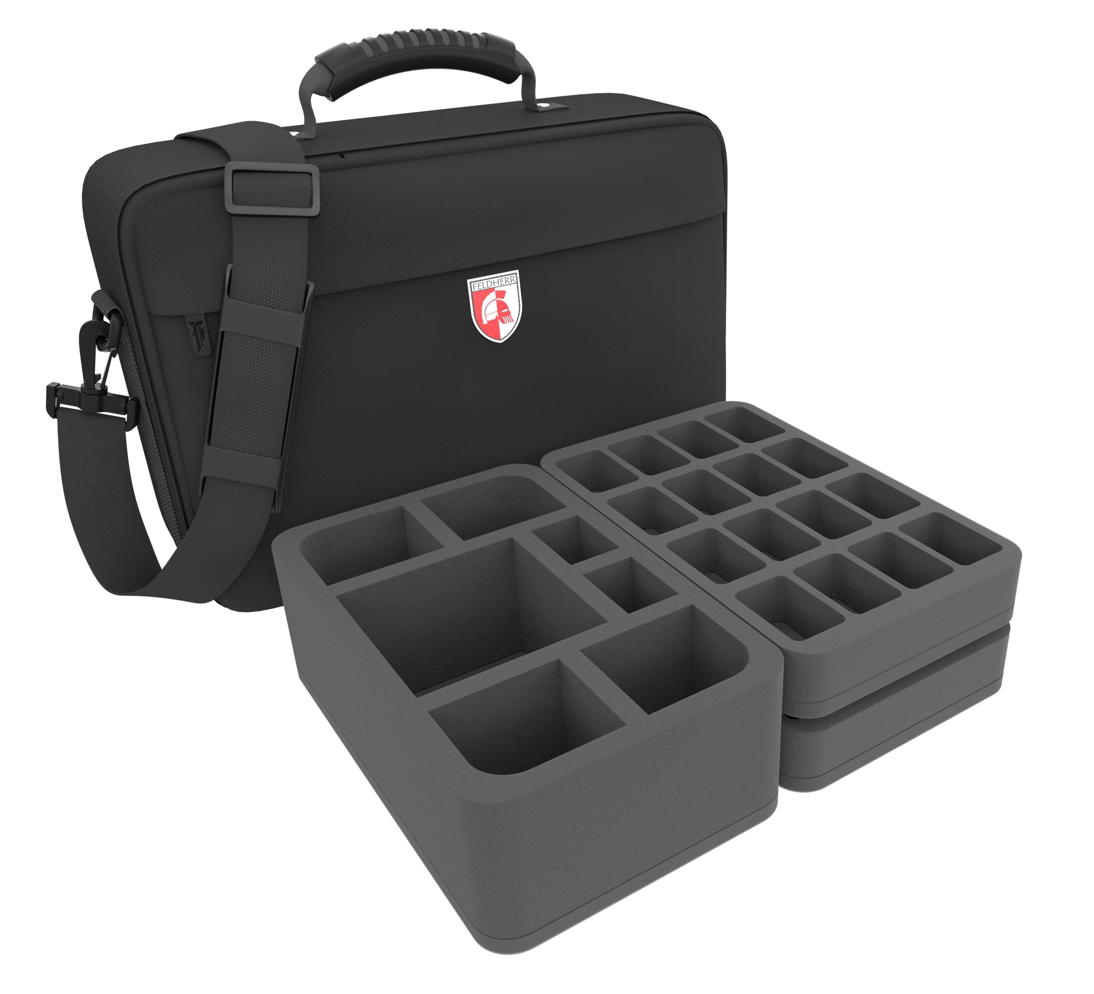Die MEDIUM Tasche ist randvoll mit maßgeschneiderten Feldherr Schaumstoffeinlagen gefüllt. Darin transportierst du deine Armee sicher durch die Gefahren des Alltags und alle deine Figuren kommen in tadellosen Zustand am Schlachtfeld an.