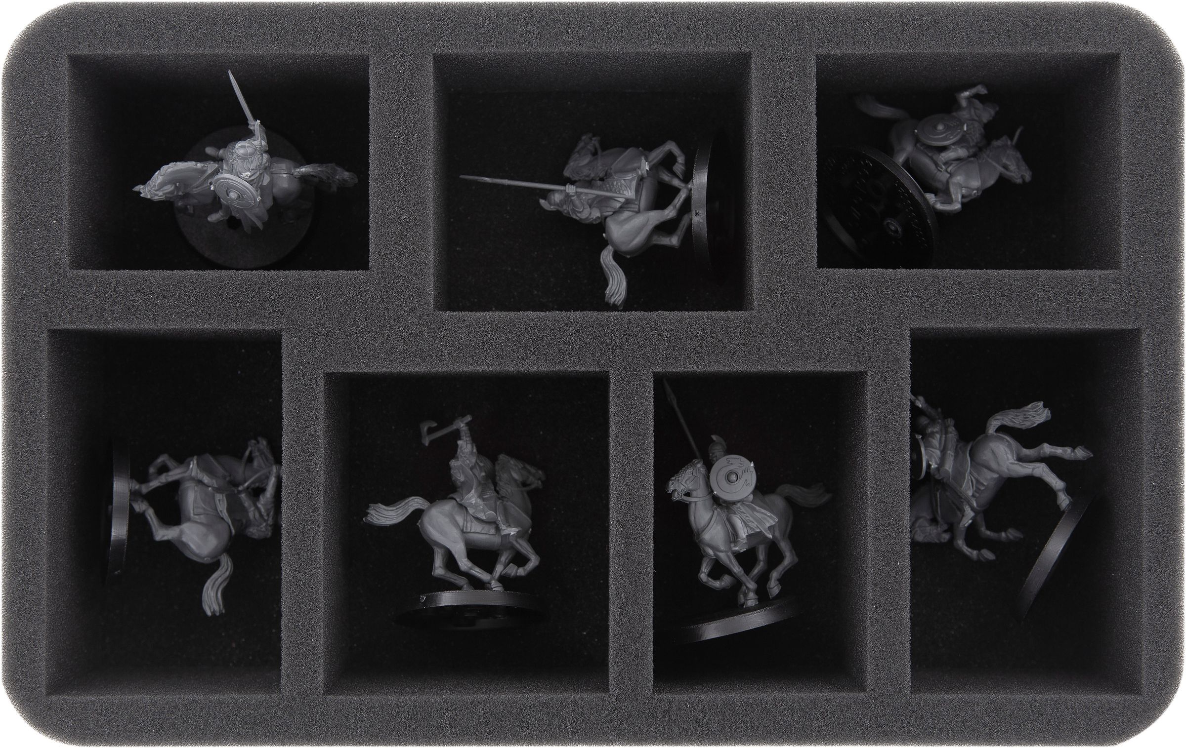 Diese Half-Size-Schaumstoffeinlage teilt sich in 7 Fächer unterschiedlicher Größe. Sie eignen sich besonders gut zum Aufbewahren größerer Modelle, wie beispielsweise Reiter- oder Ritter-Miniaturen, aus "Der Herr der Ringe" und "Der Hobbit" für das Middle-earth Tabletop-Strategiespiel.