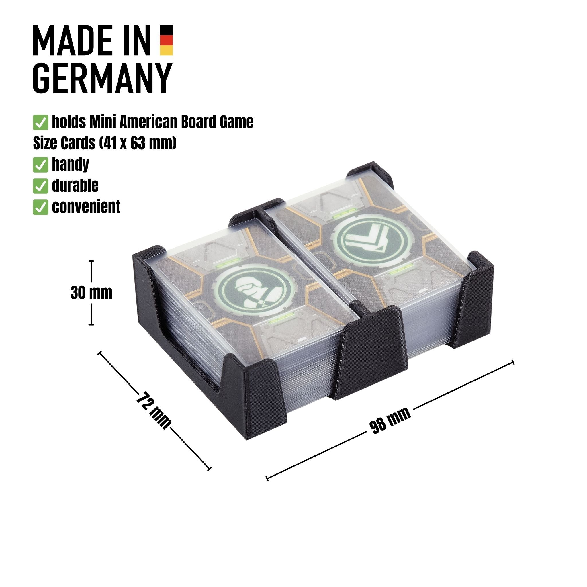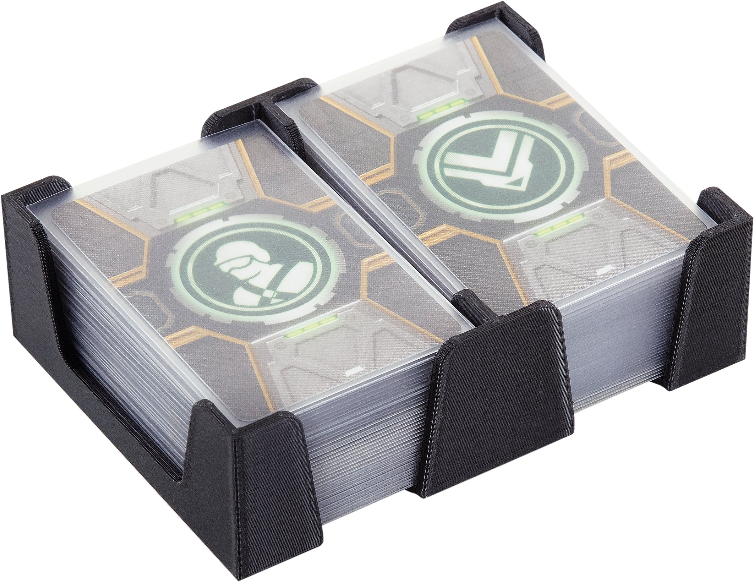 Ob Tabletop, Kartenspiel oder Brettspiel – Der Tischkartenhalter spart Nerven und Zeit. Er hilft dir beim Organisieren der unterschiedlichen Kartentypen während des Spiels, sorgt dafür, dass die Kartenstapel auch mit Sleeves nicht umkippen und am Ende der Partie kannst du deine Spielkarten einfach und ordentlich wegsortieren.
