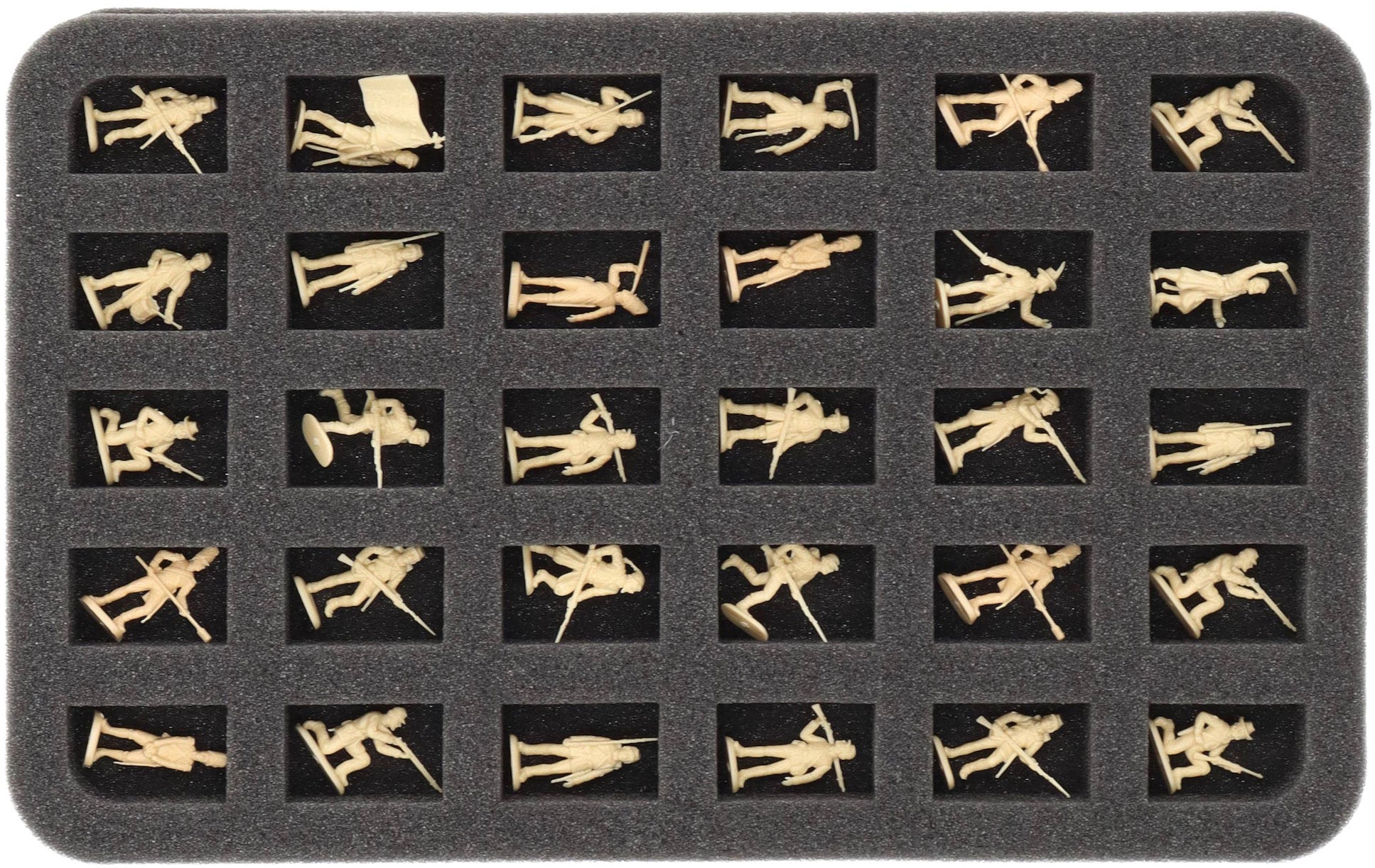 - 2 Half-Size-Schaumstoffeinlagen mit je 30 Fächern für 20 mm Tabletop-Figuren wie Infanteristen der Unionsstaaten und Zuaven aus dem Amerikanischen Bürgerkrieg, sowie Modelle mit ähnlichen Abmessungen (HS030A014)