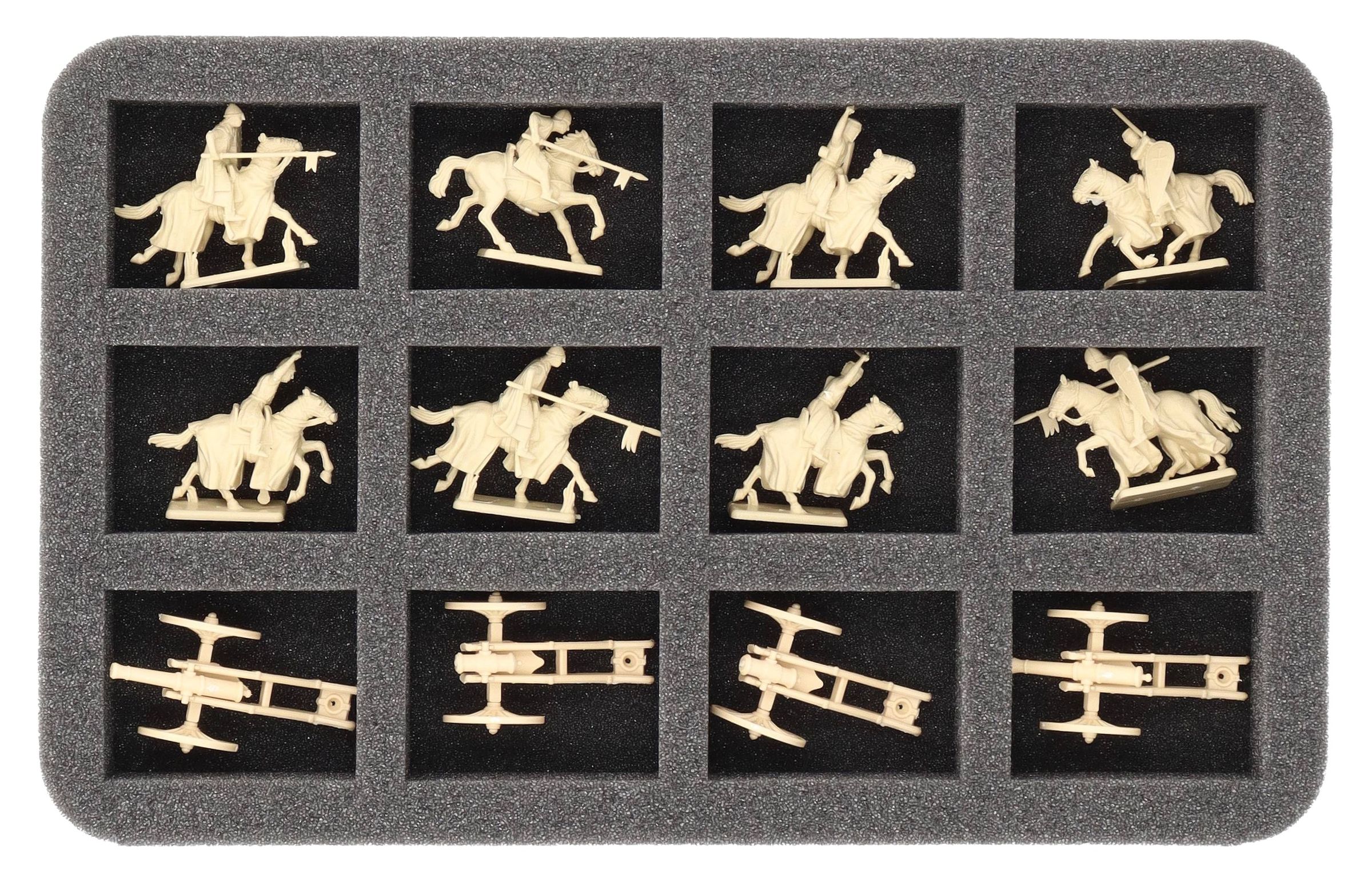 Die Einlage eignet sich hervorragend für ausladende historische Modelle wie Tempelritter oder Kanonen der französischen Imperialen Garde, sowie für Miniaturen mit ähnlichen Abmessungen.