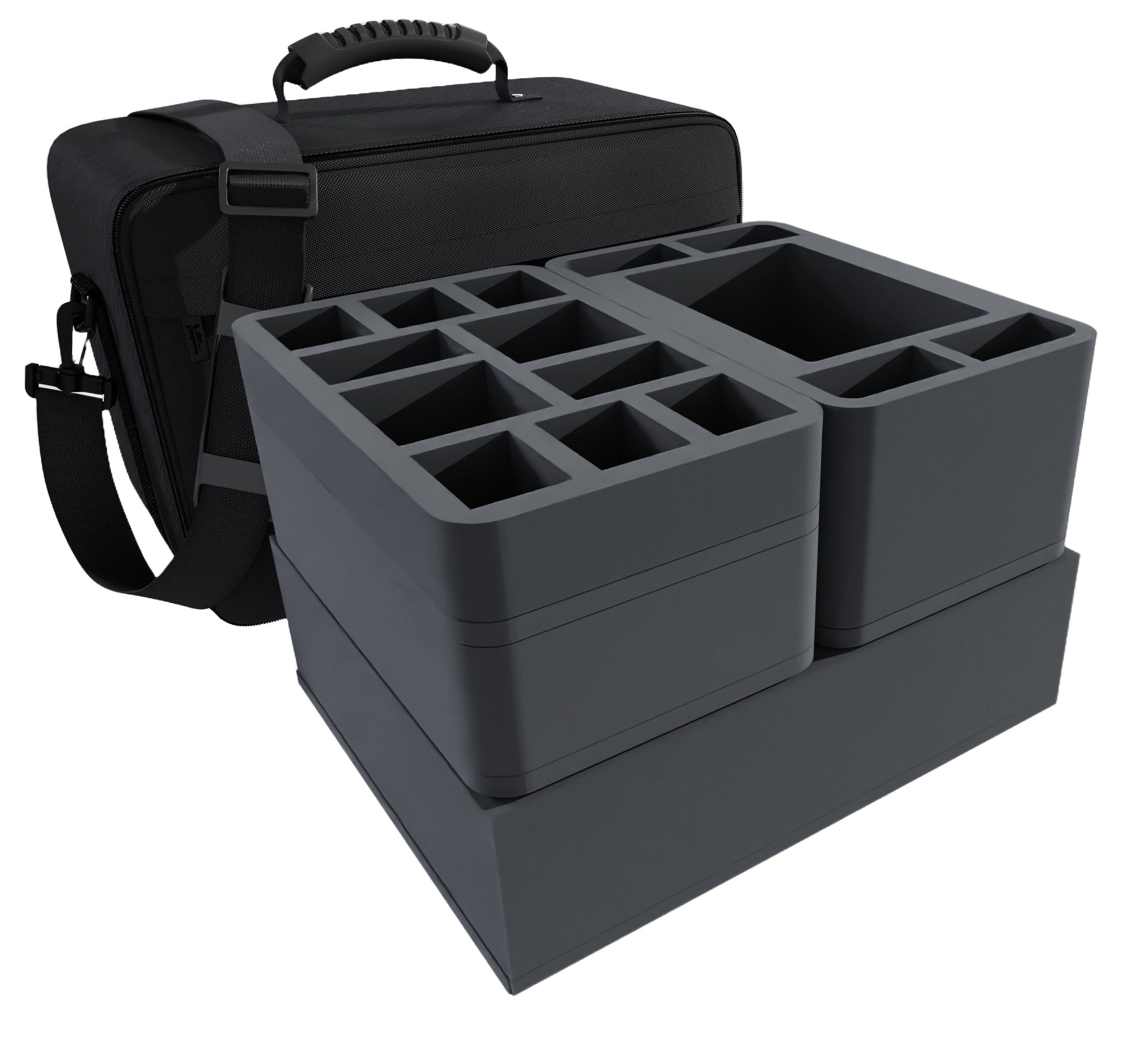 Eine Full-Size und drei Half-Size Schaumstoffeinlagen bietet deinen Miniaturen zuverlässigen Schutz - jede Miniatur erhält ihr eigenes, passgenaues Fach.