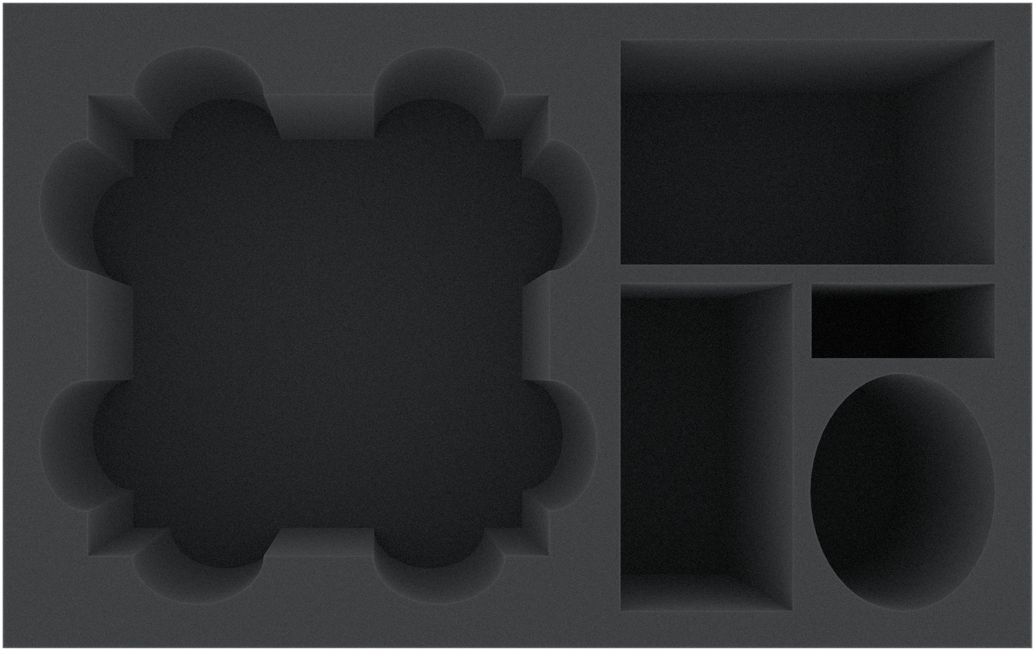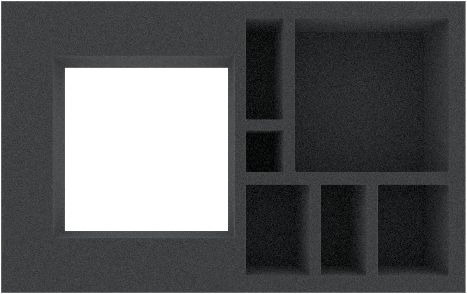 • 1 Double-Size-Schaumstoff-Set mit 10 Fächern für z. B. Tesseract Vault + Flugbase + weitere Miniaturen wie Triarch Stalker, Tomb Blades, Doom Scythe (ohne Base), Skorpekh-Destruktoren, C'tan Shard of The Nightbringer (DS15Set)