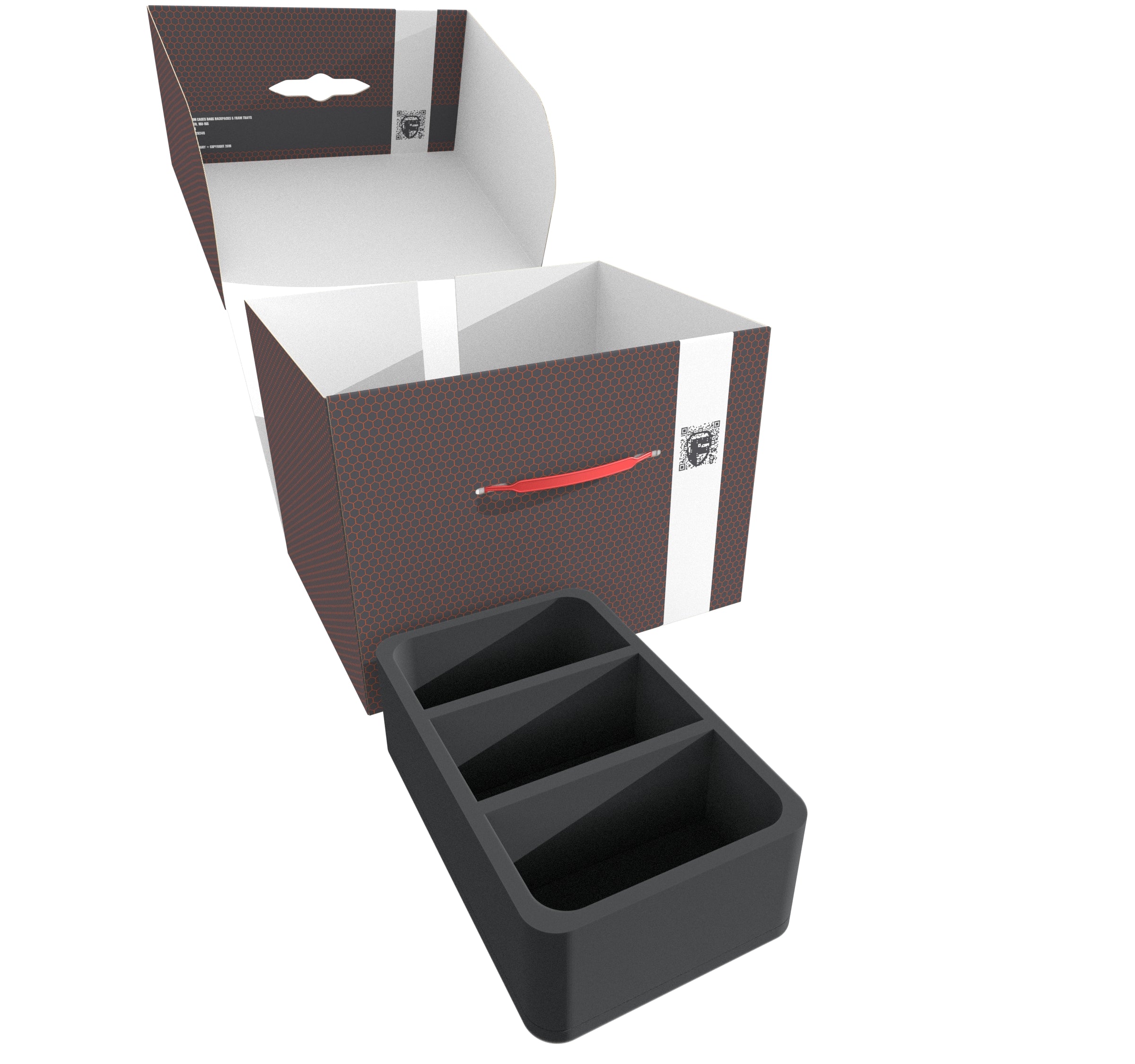 Die Lagerbox FSLB250 besteht aus beschichtetem, doppelwelligem Karton und ist damit einerseits sehr leicht und außerdem besonders stabil. Mit den passenden Schaumstoffeinlagen lassen sich Miniaturen, Spielmaterial und alle anderen Güter sicher und staubgeschützt aufbewahren – mit dem Tragegriff aus Kunststoff auch bequem transportieren.