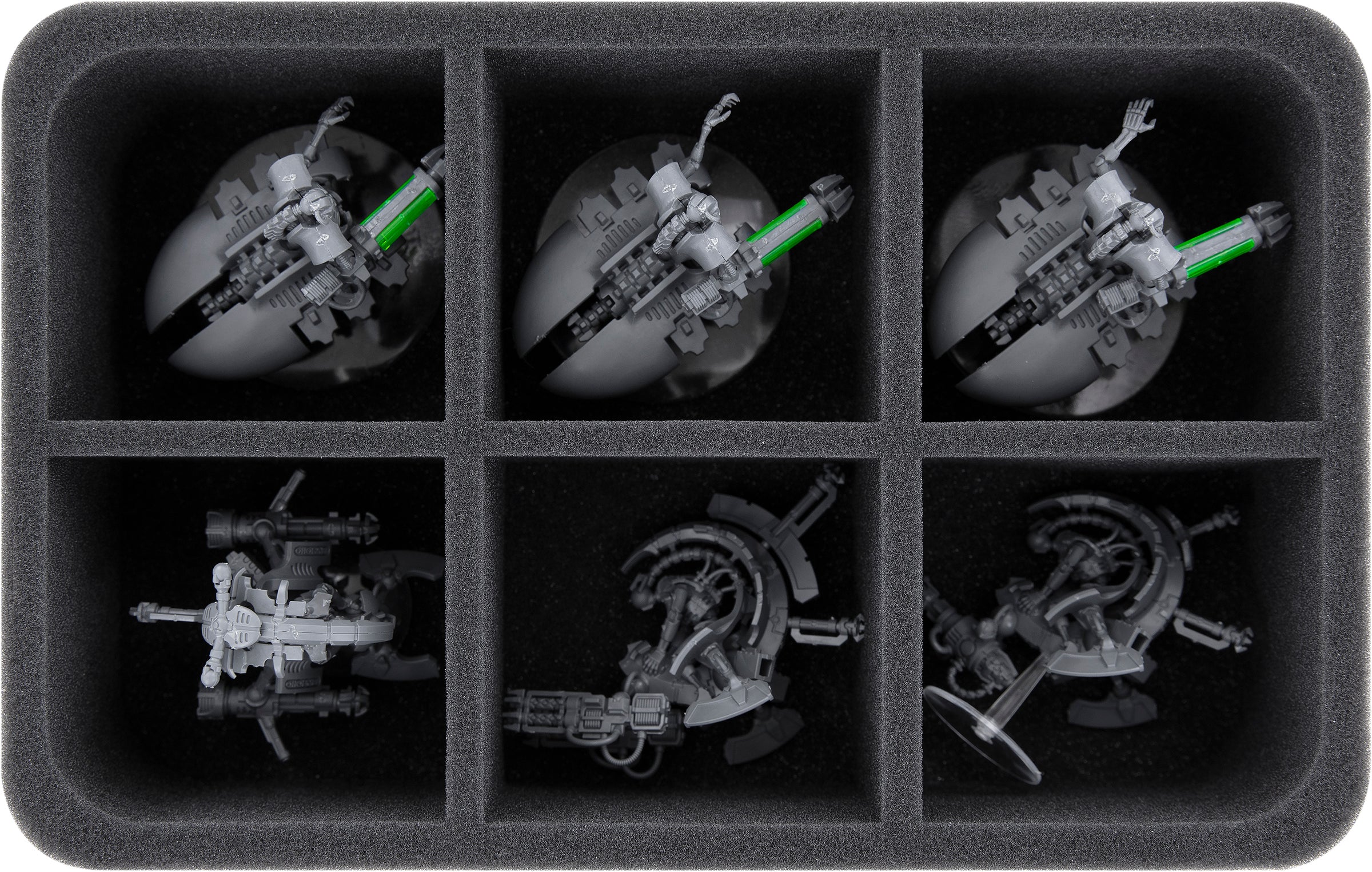 Die Half-Size-Schaumstoffeinlage mit 6 großen Fächer ist ideal, um Necron-Modelle mittlerer Größe ordentlich und sicher aufzubewahren und geschützt zu transportieren.