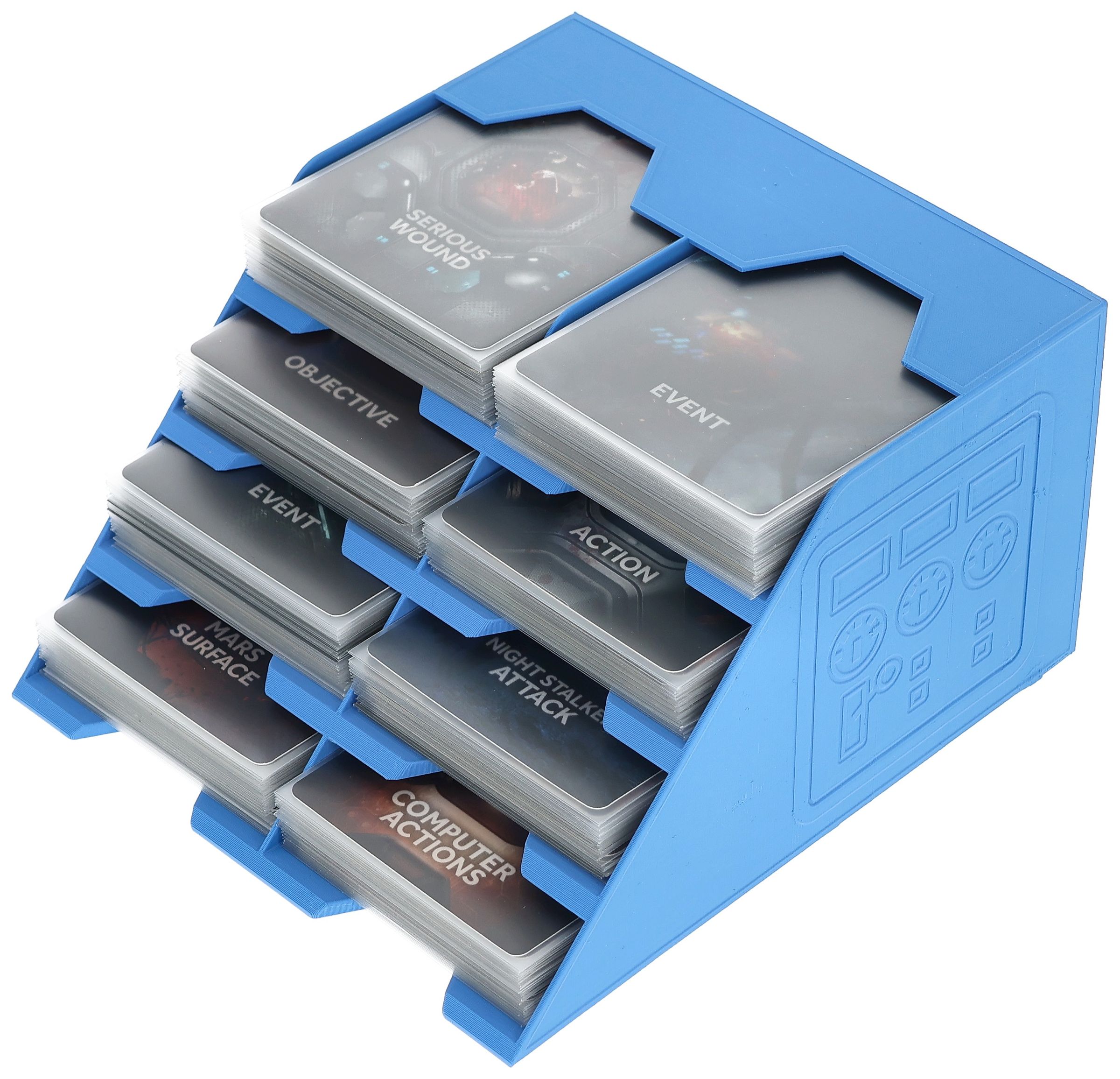 • Platz für alle wichtigen Kartendecks: Der Halter bietet acht separate Fächer zum Sortieren von u. a. Angriffs-, Ereignis- und Aktionskarten und sorgt für eine geordnete Anordnung der Karten auf dem Tisch.