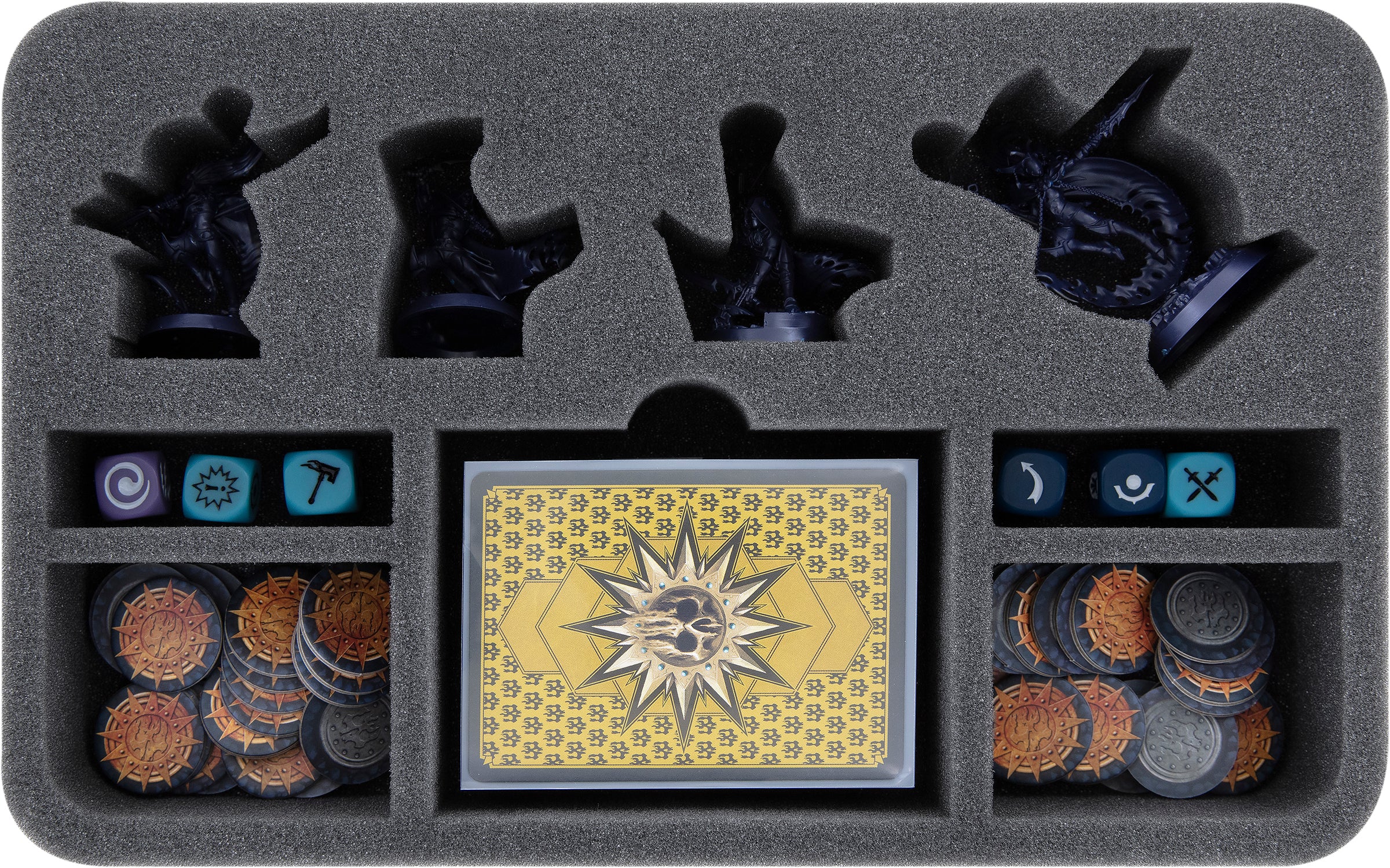 Für den Schutz deiner Modelle sorgt diese robuste Transportbox inklusive Feldherr Half-Size-Schaumstoffeinlage. So bleibt der Weg durch die Finsternis von Einzelteilen verschont und auch das Spielmaterial bleibt beieinander.