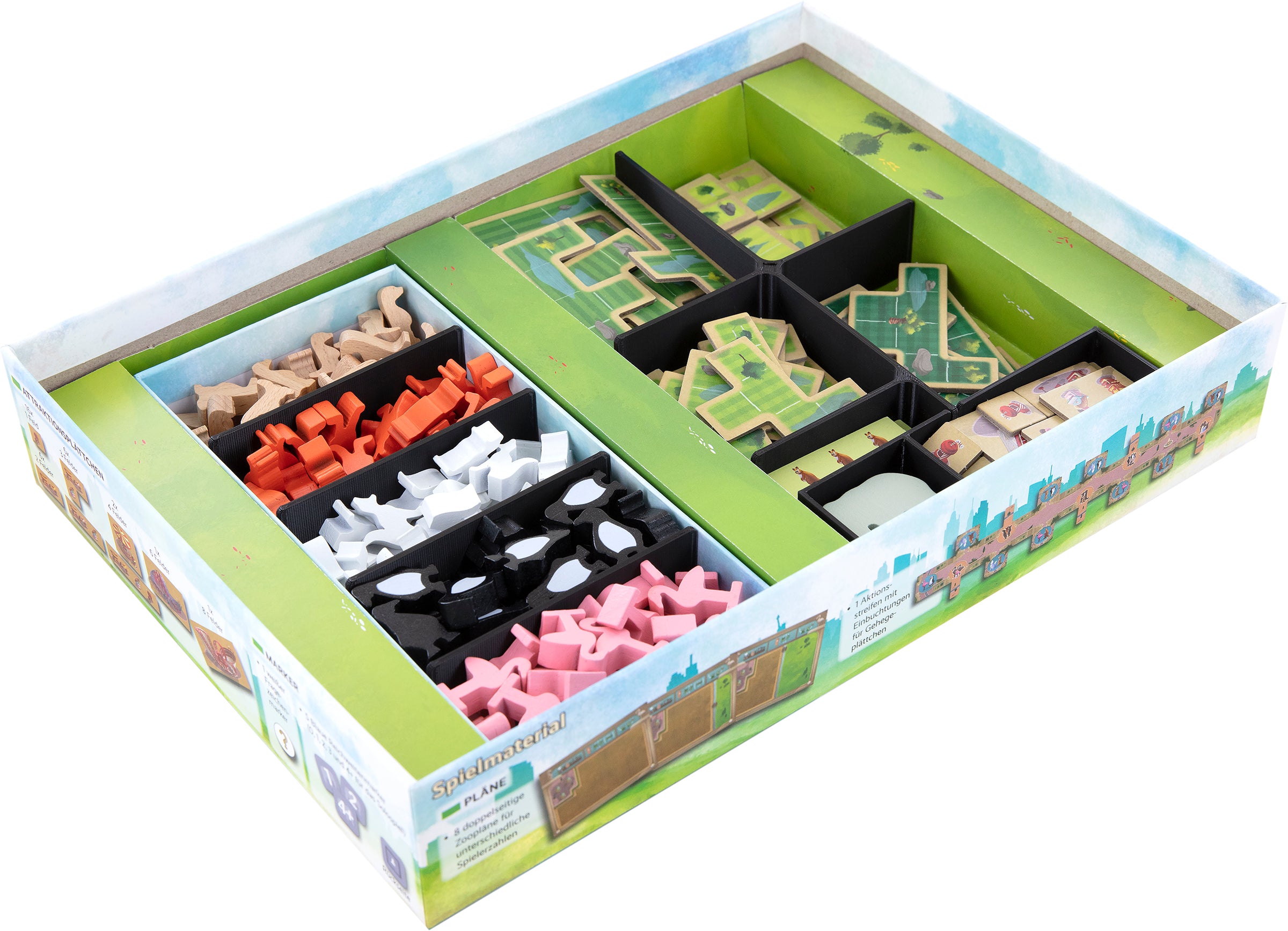 • Die Organizer-Inserts passen in die originale New York Zoo Grundspielbox von Feuerland-Spiele.