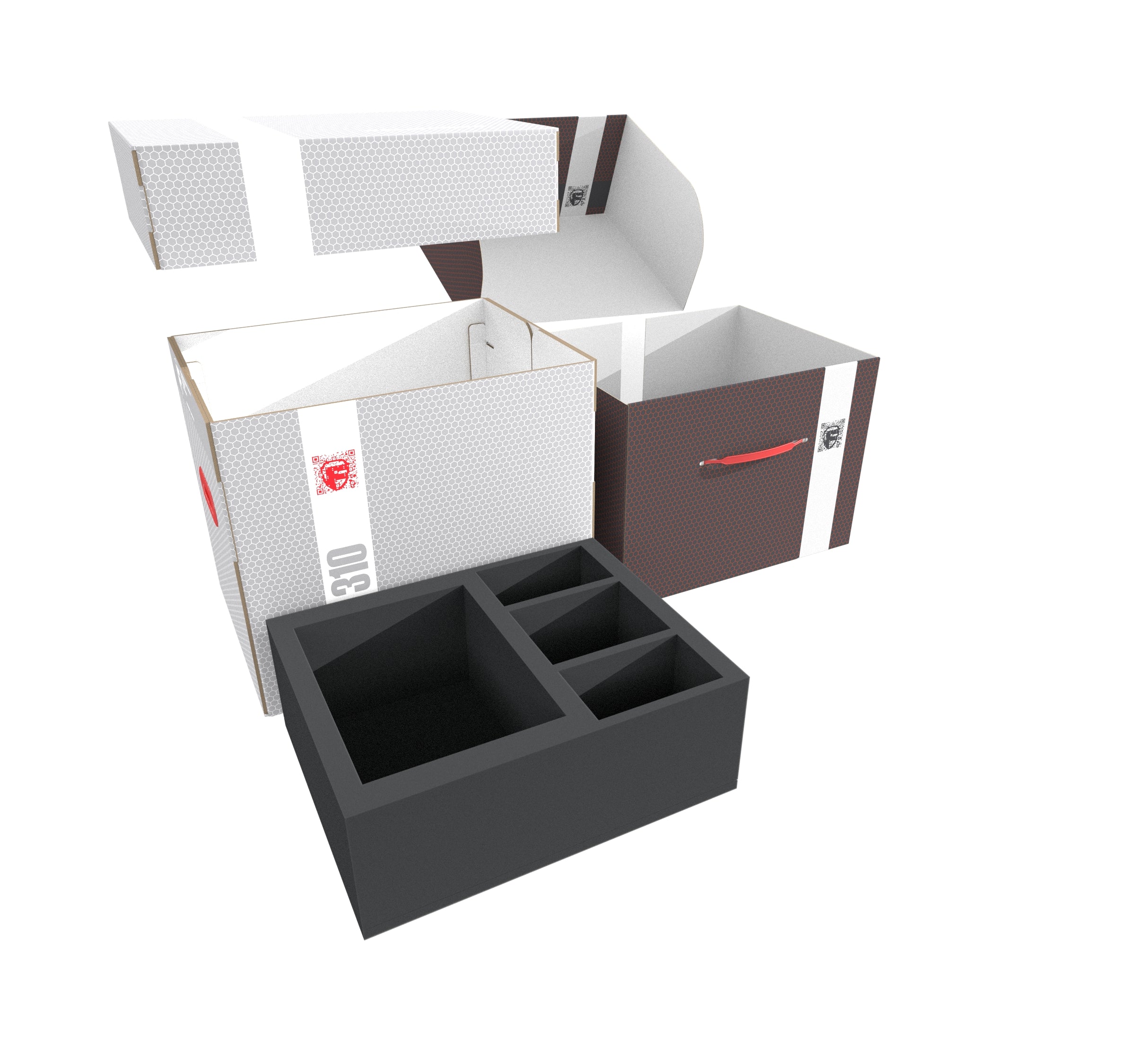 Die Lagerboxen FSLB250 und FSLB310 bestehen aus beschichtetem, doppelwelligem Karton und sind damit einerseits sehr leicht und außerdem besonders stabil. Mit den passenden Schaumstoffeinlagen lassen sich Miniaturen, Spielmaterial und alle anderen Güter sicher und staubgeschützt aufbewahren.