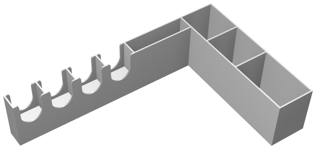 Für die Defender ITEMeeples steht jeweils ein Fach an der Längsseite des Tokenhalters bereit. Die unterschiedlichen Token sortierst du in die vier freien Fächer ein.