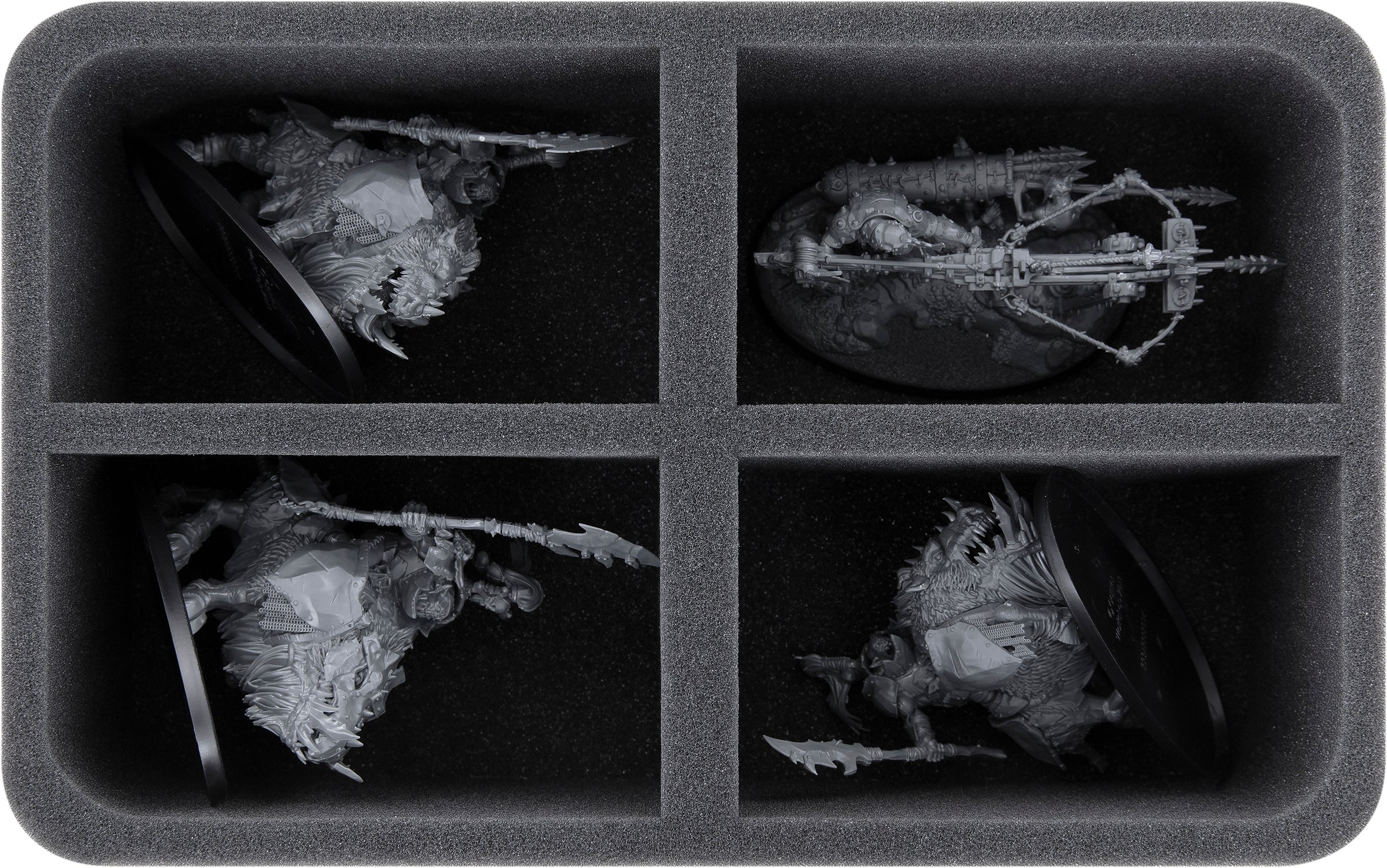 Auf dieser Feldherr Schaumstoffeinlage hast du Platz für bis zu 4 Miniaturen deiner Armee. Das Insert eignet sich zum Beispiel besonders gut zum Aufbewahren des Bestienkillabogen, Gore-gruntas und Modellen mit ähnlichen Abmessungen.