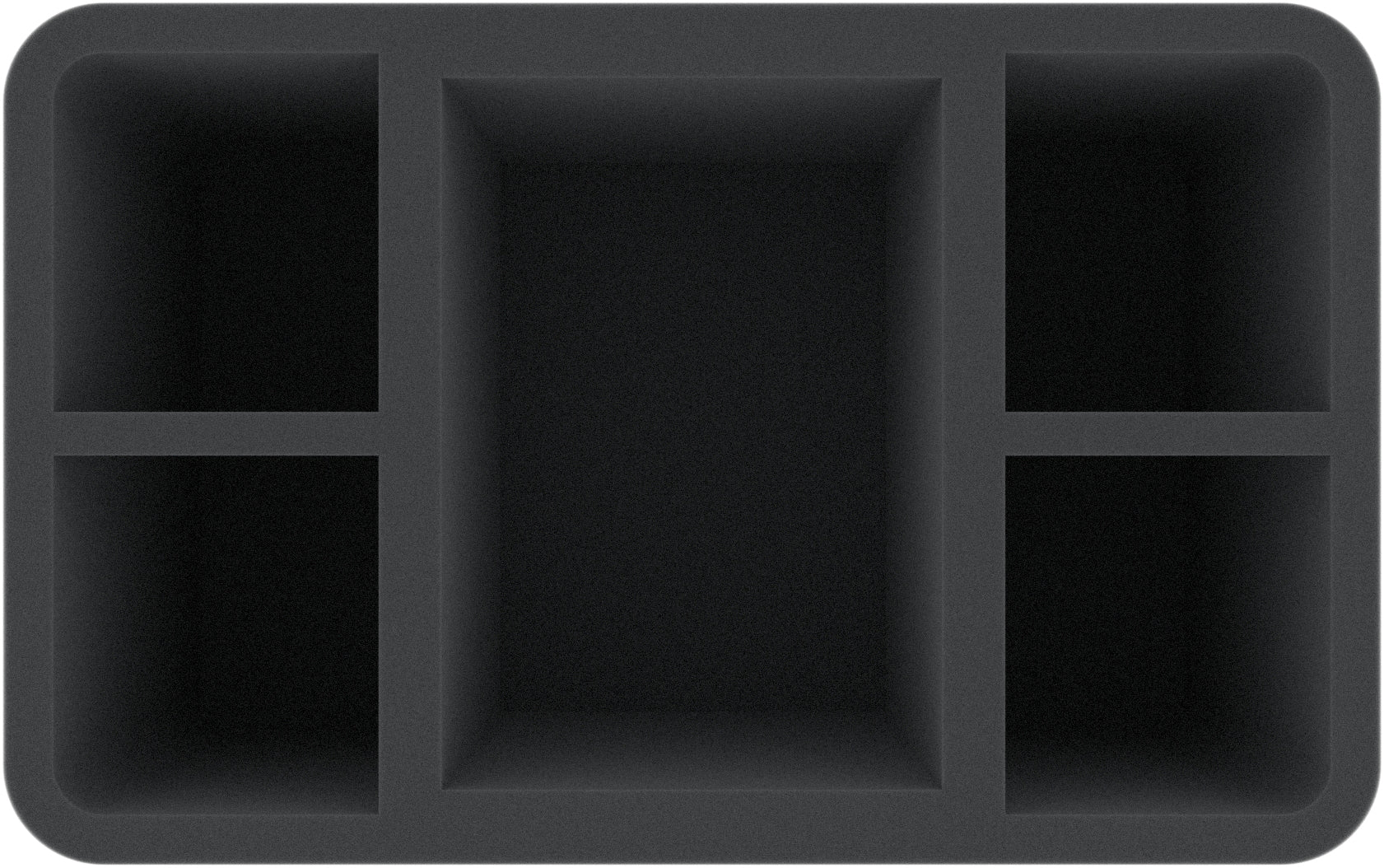 Die Half-Size-Schaumstoffeinlage hat die Abmessungen: 275 mm x 172 mm x 140 mm Gesamthöhe (130 mm Nutzungshöhe + 10 mm Boden)
