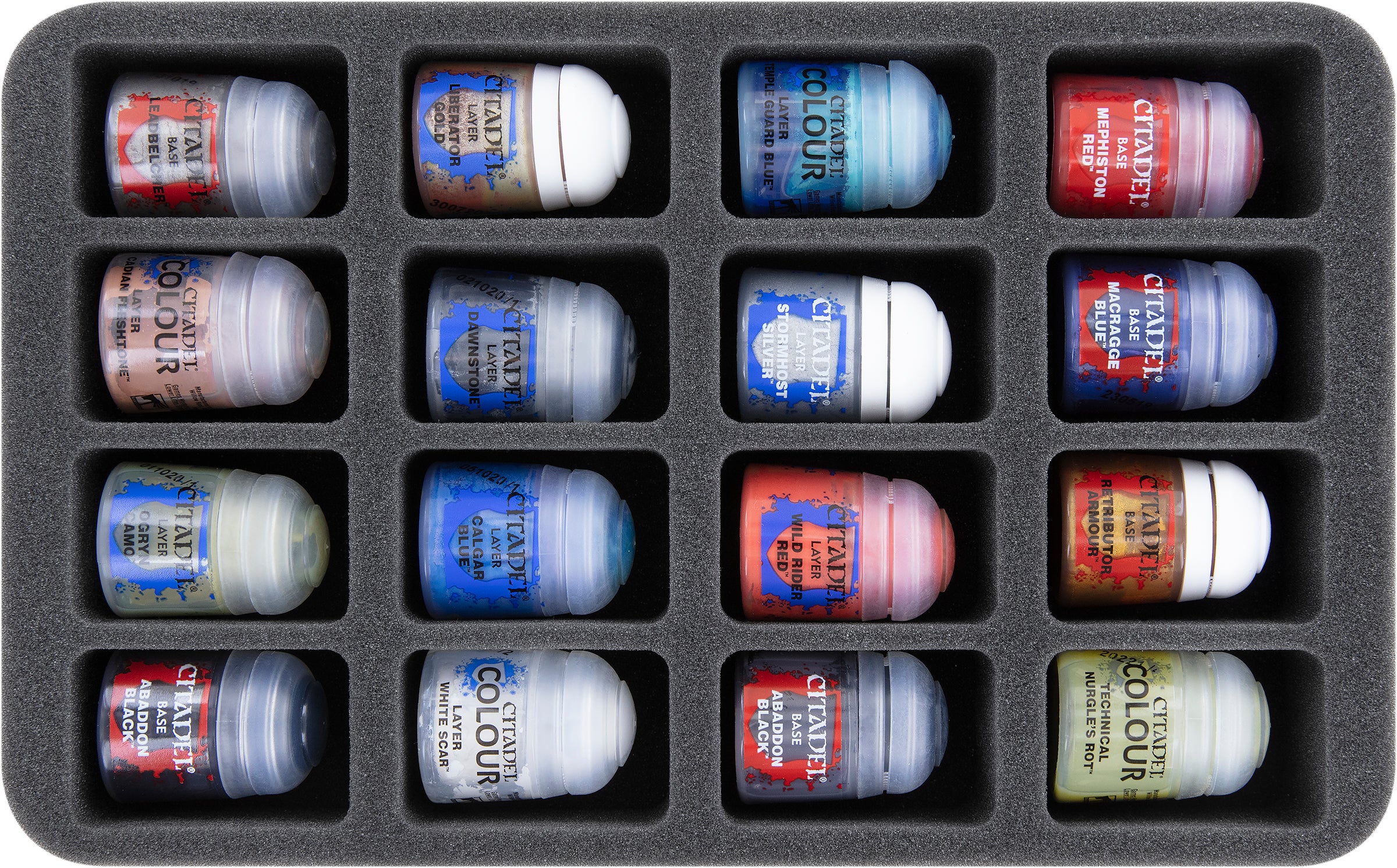 - 3 Half-Size Schaumstoffeinlagen mit jeweils 16 Fächer für Miniaturen oder Citadel 12 ml, 18 ml und 24 ml Farbtöpfchen (HS045A022)