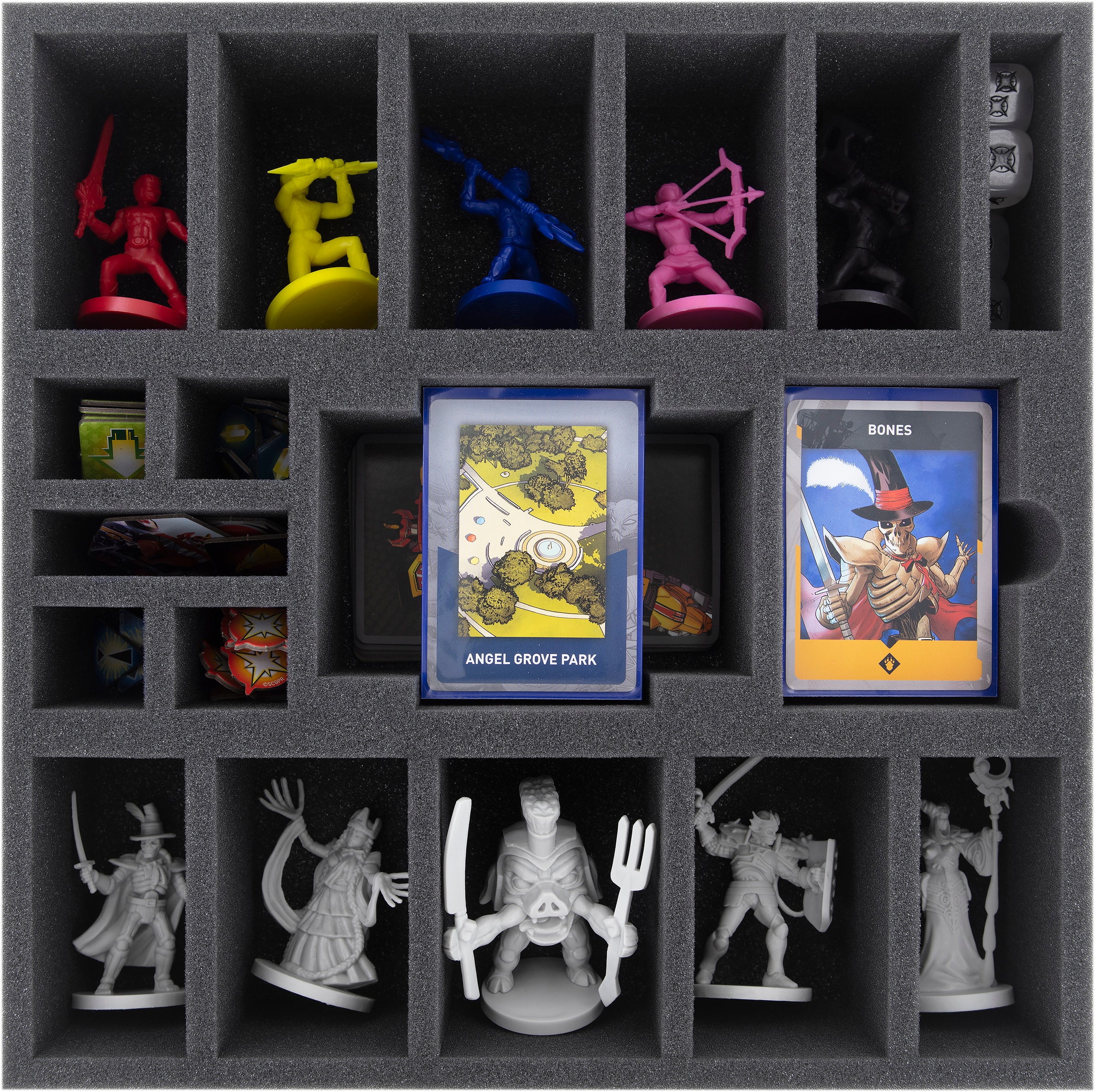 Für ein ungetrübtes Spielvergnügen mit Deinen Freunden, wollen alle Power Rangers und ihre Gegner sanft gebettet sein, damit sie nicht schon unterwegs zu Deinen Freunden Schadenspunkte sammeln müssen. Das Feldherr Schaumstoff-Set bietet für jede Figur, jede Karte, jeden Token und die Würfel ein maßgefertigtes Fach.