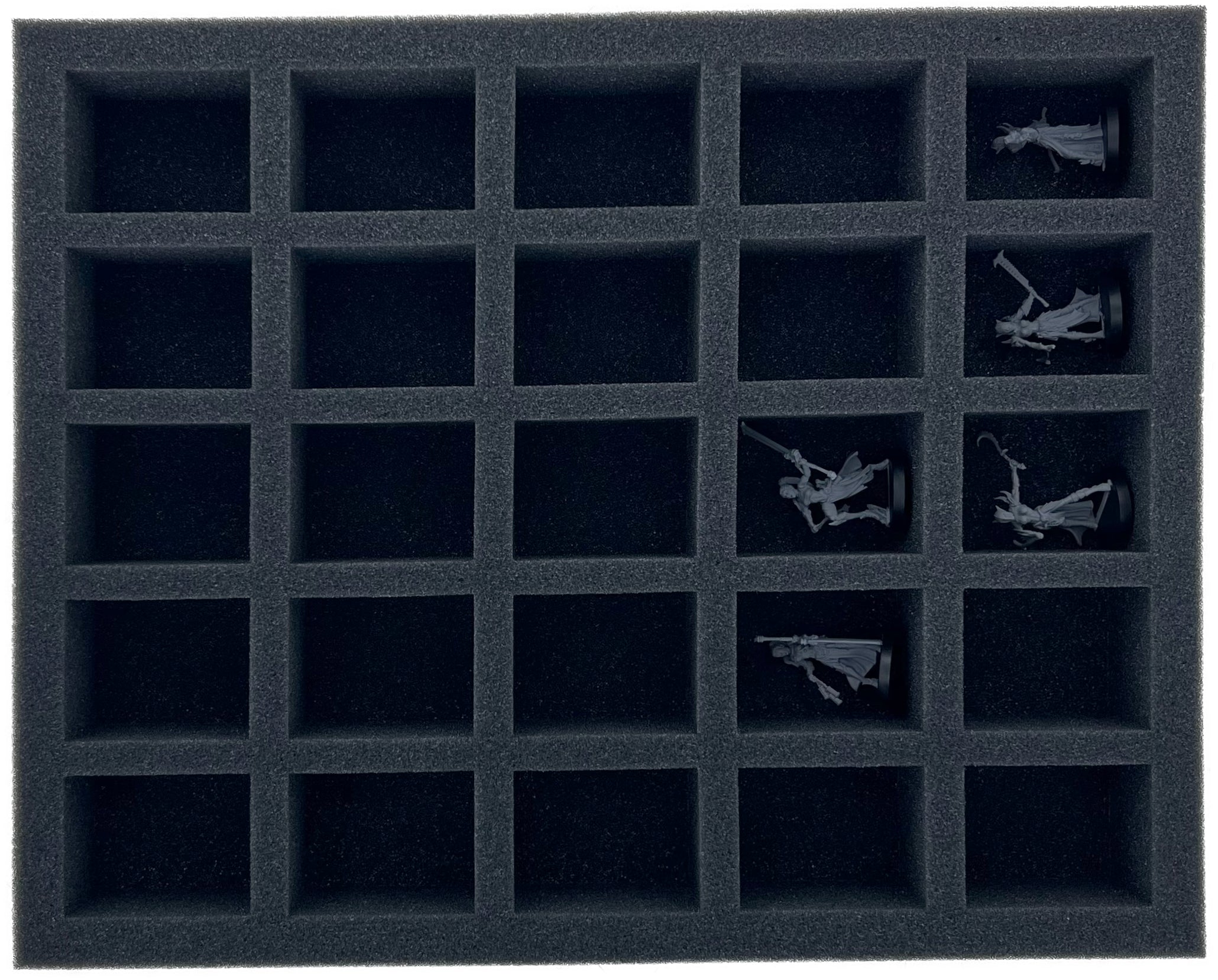 Auf dieser Feldherr Full-Size-Schaumstoffeinlage hast du Platz für bis zu 25 Miniaturen deiner Armee. Das Insert eignet sich besonders gut für Modelle auf bis zu 40 mm Base.