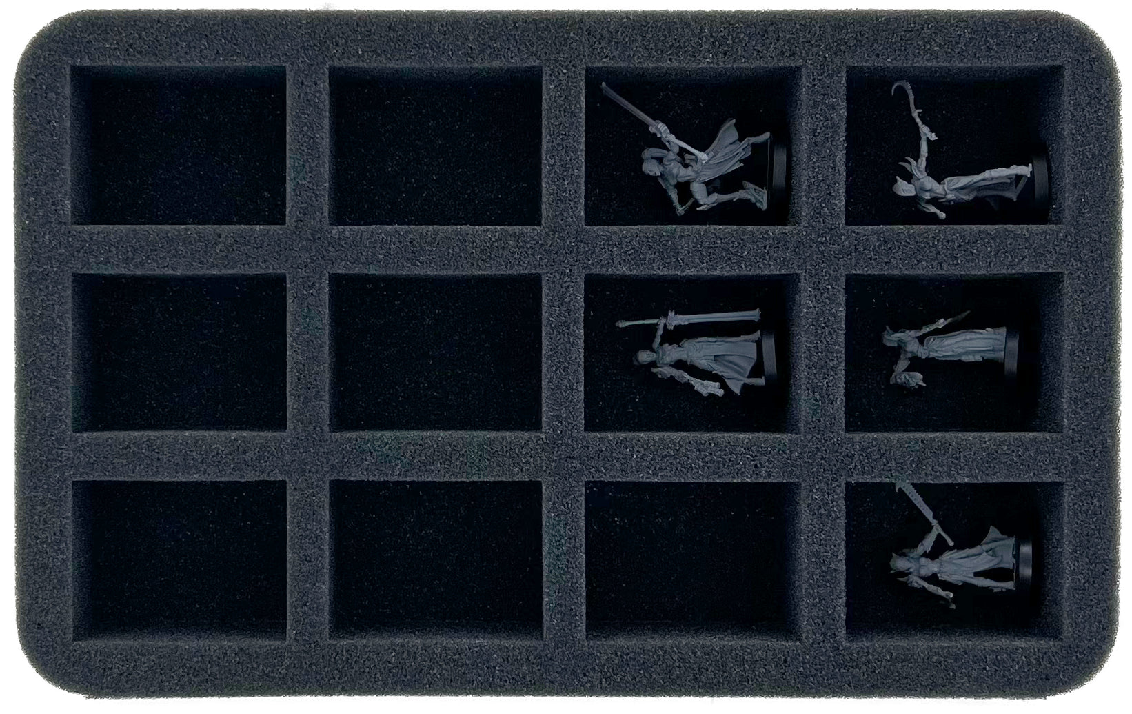 Auf dieser Feldherr Schaumstoffeinlage hast du Platz für bis zu 12 Miniaturen deiner Armee. Das Insert eignet sich besonders gut für Modelle auf bis zu 40 mm Base.