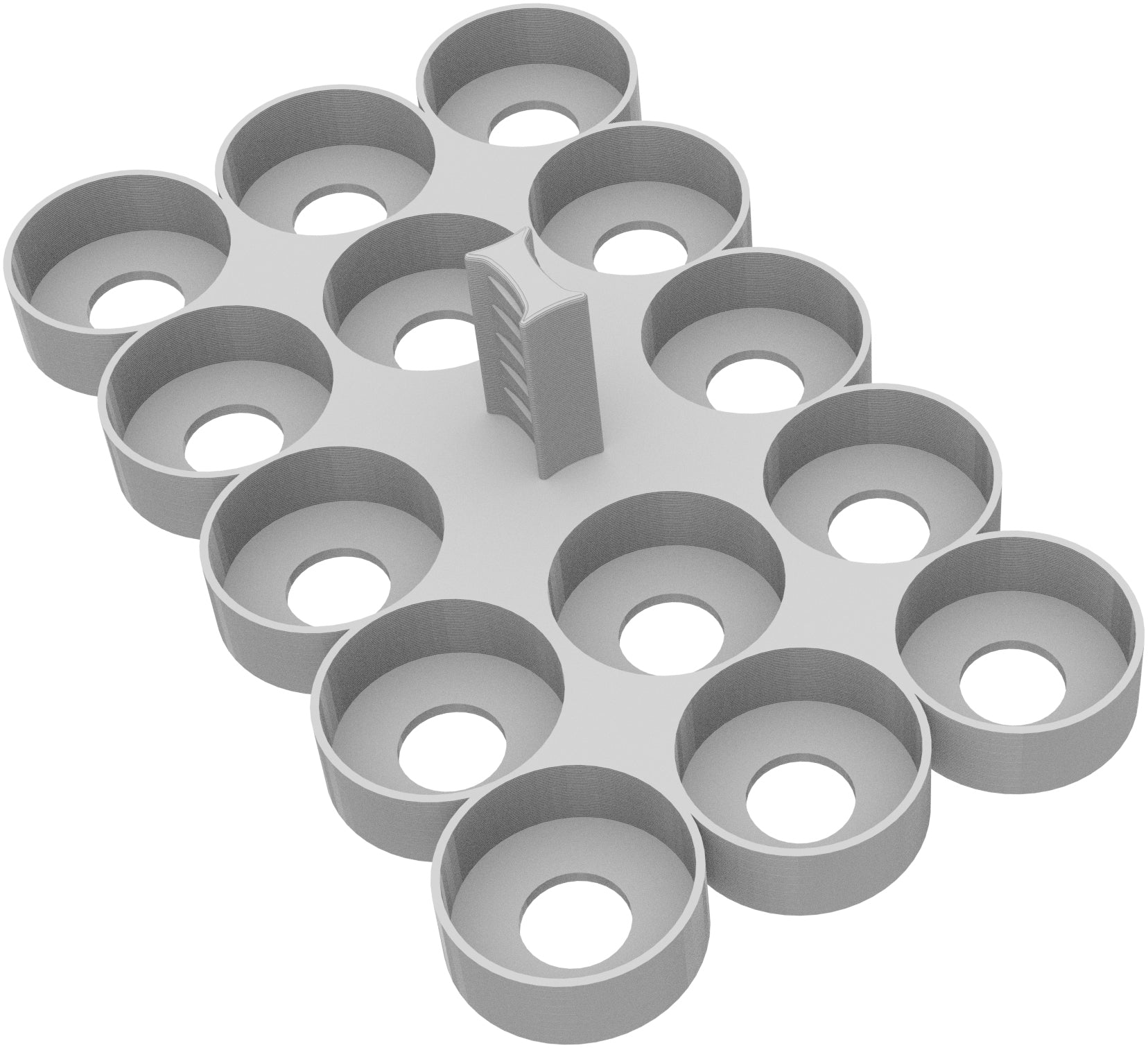 - Jedes Farbrack wird jeweils auf einem Tokenhalter gelagert. Dank eines cleveren Slot-In Systems verrutschen die Trays nicht. Auch bei halber Auslastung bleibt das obere Tray fest auf dem Tokenhalter.
