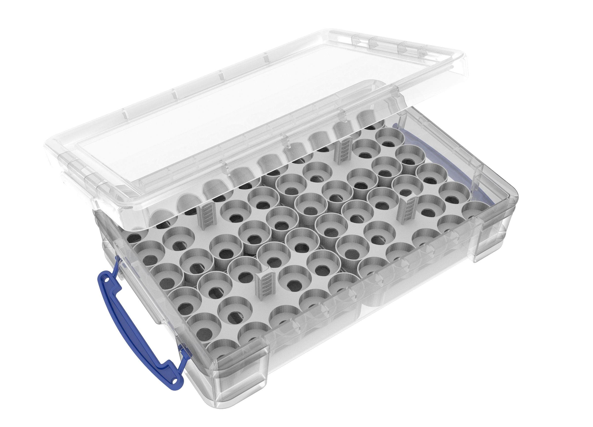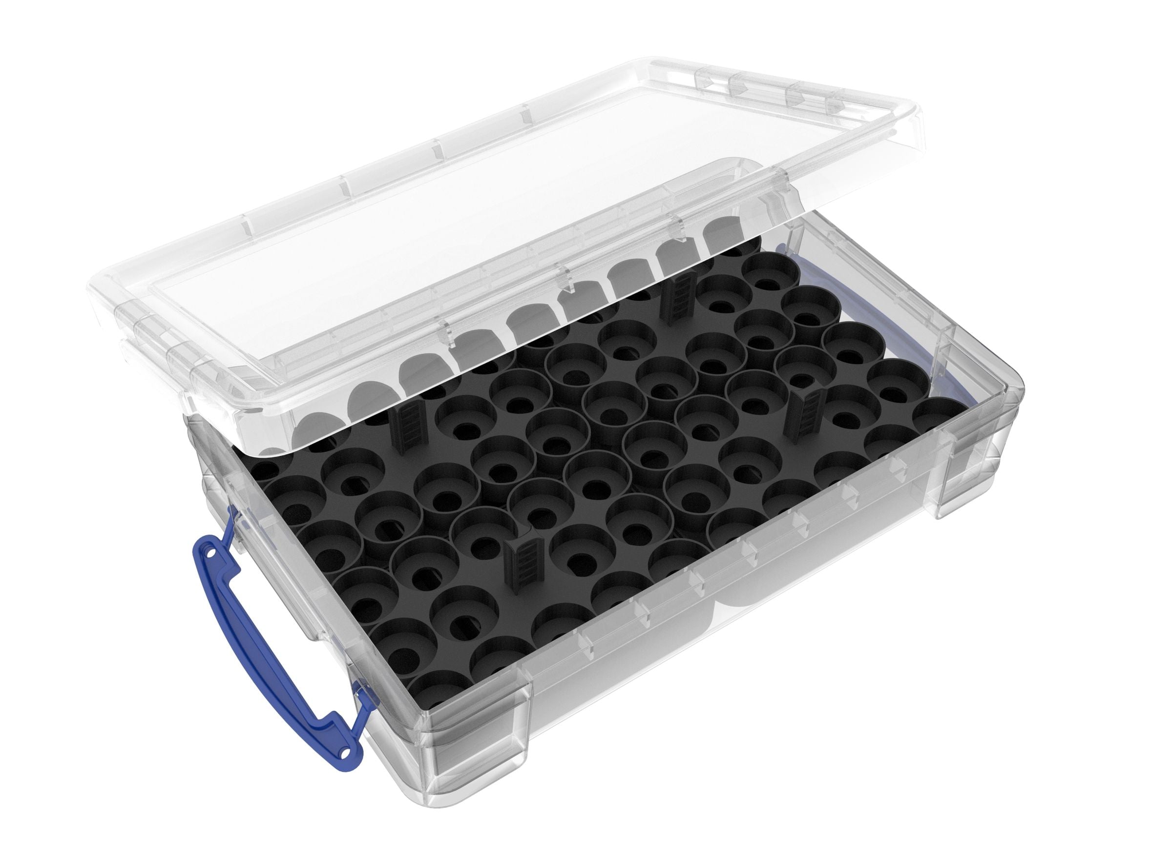 Die robuste und 4l Really Useful Box bietet zuverlässigen Schutz und lässt sich platzsparend unterbringen. Stapel sie im Regal oder packe sie in deinen Rucksack. Sogar kopfüber bleiben die Farben in ihrem Fach und genießen besten Schutz.