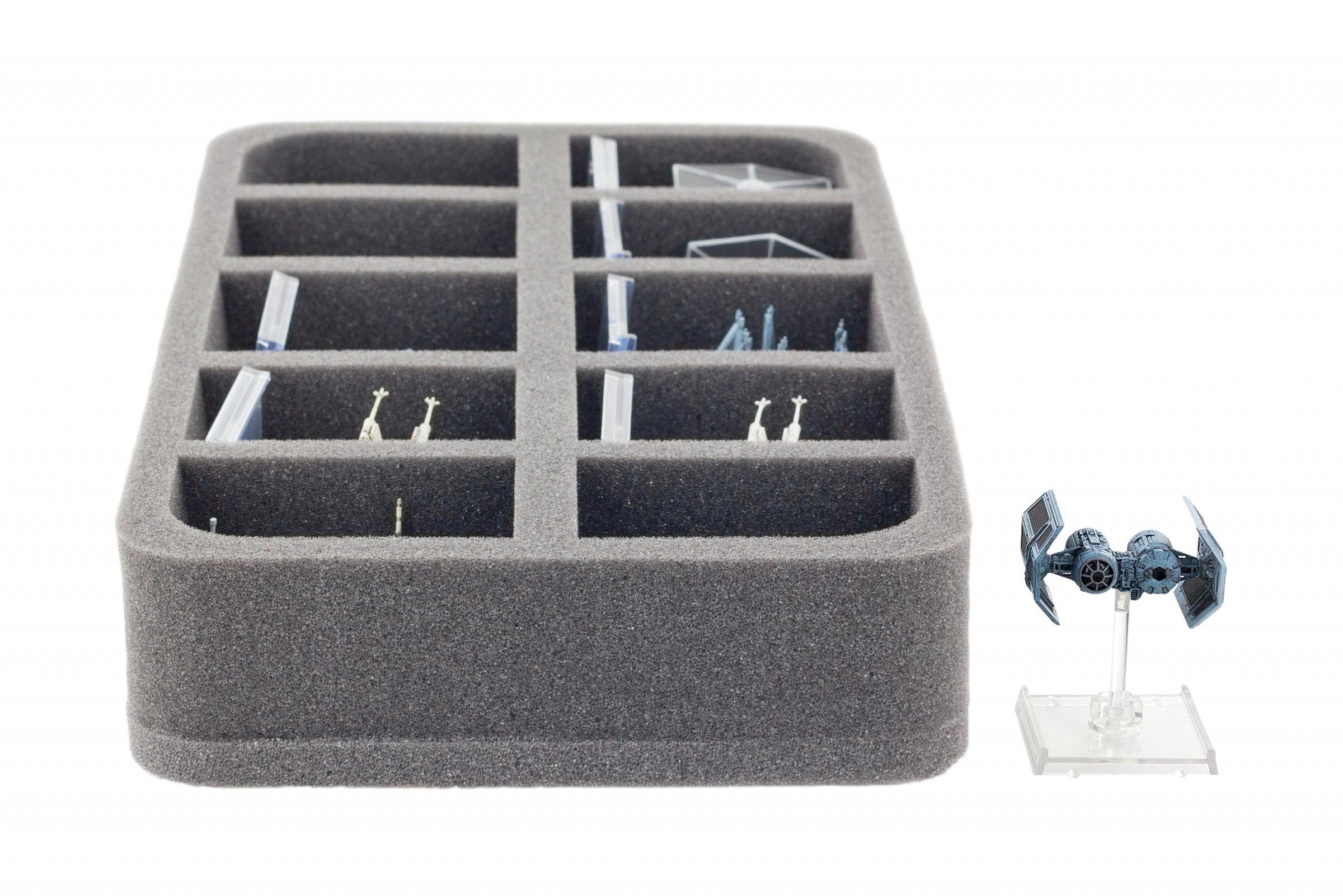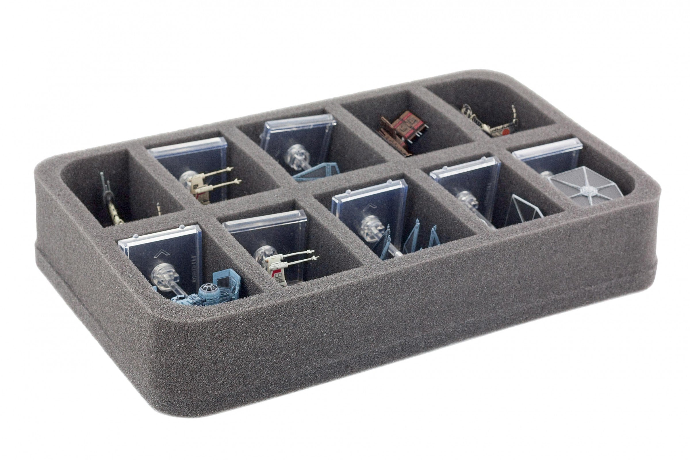 Schaumstoffeinlage für 10 Star Wars X-Wing Raumschiffe mit montierter Base. Für alle die Ihre Raumschiffe ohne montierte Base transportieren möchten empfehlen wir unseren Artikel HSBE035BO.