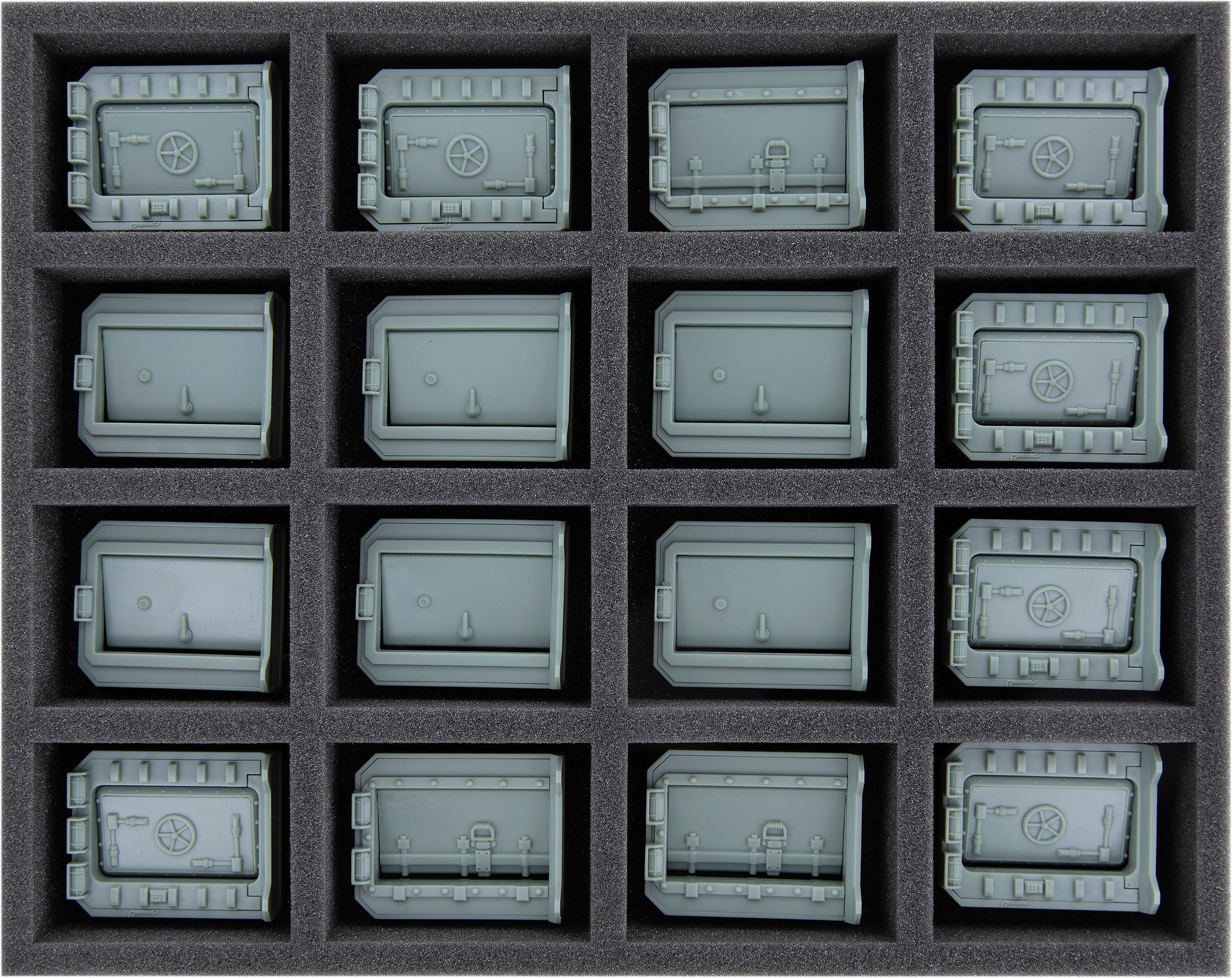 - 1 Full-Size Schaumstoffeinlage mit 16 Fächern für größere Miniaturen (FSMEFP060BO)