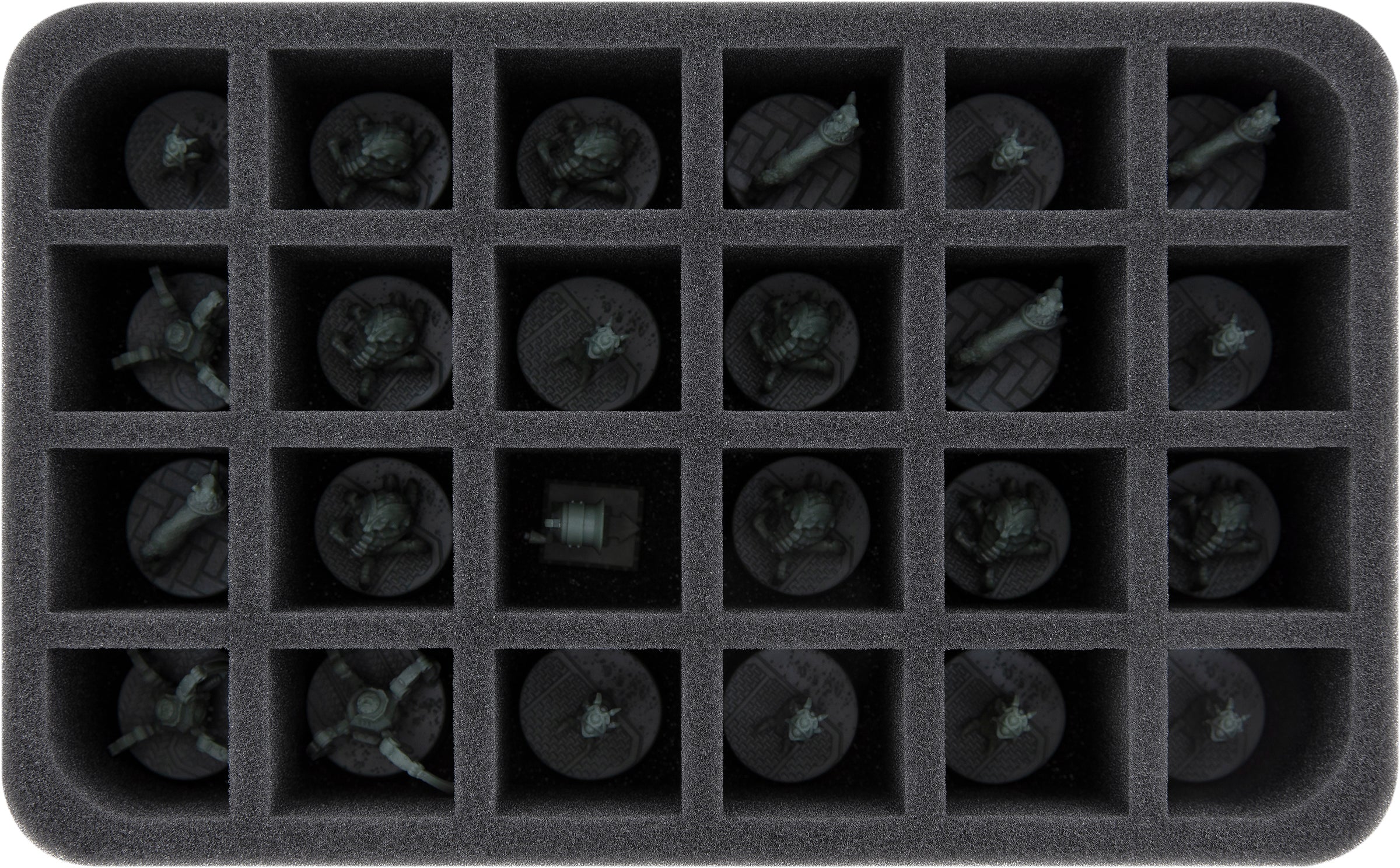 - 1 Full-Size Schaumstoffeinlage mit 25 Fächern für Heroes und ähnlich große Miniaturen (FSLQ050BO)