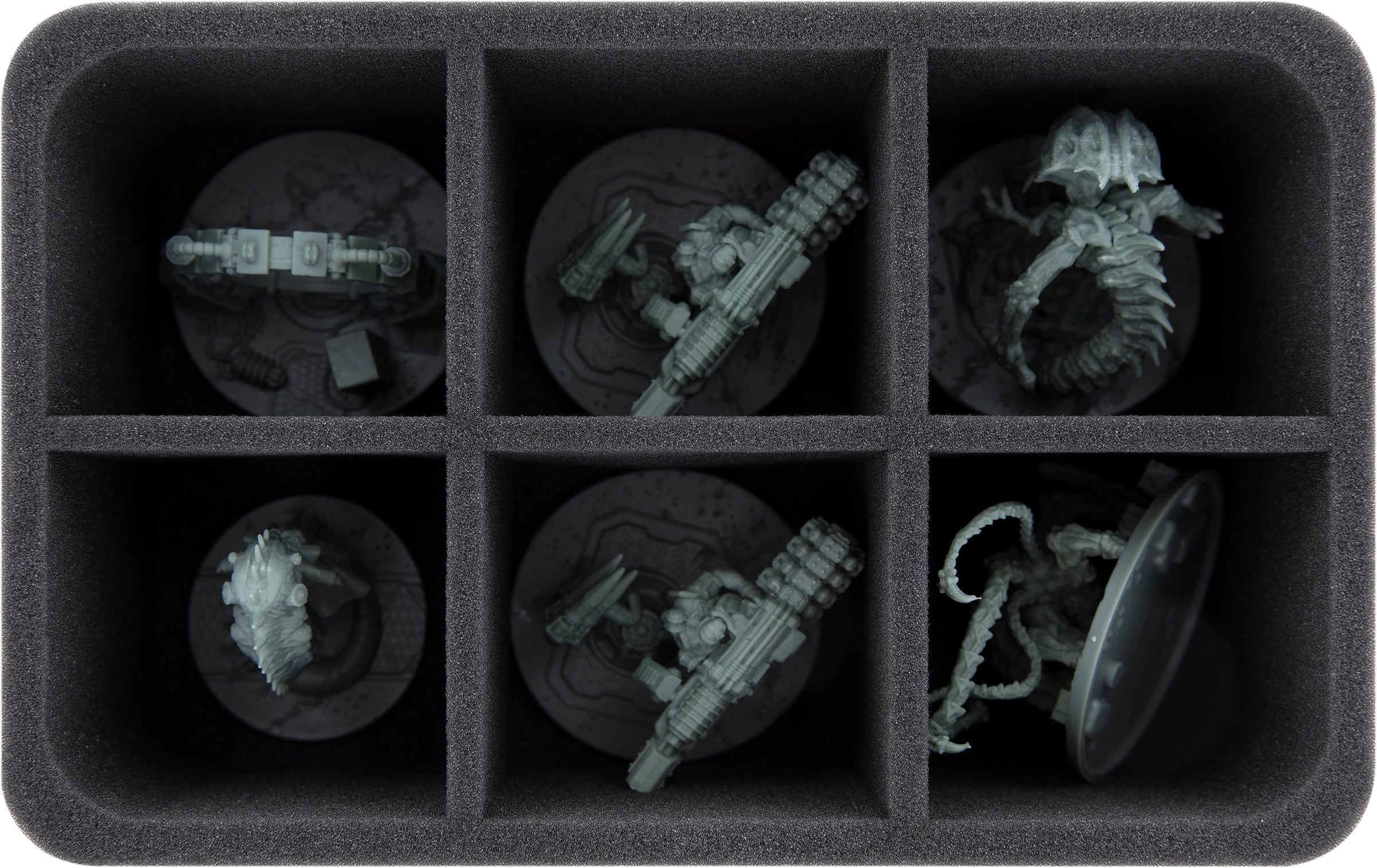 Passgenaue Fächer sorgen dafür, dass deine Figuren auch beim Transport an ihrem Platz bleiben und nicht umher rutschen. Umgeben von weichem Schaumstoff sind die Plastikmodelle optimal vor Beschädigung geschützt. Die Tentakel und Klauen der Aliens bleiben hier genauso ganz, wie die Waffen deiner Helden.