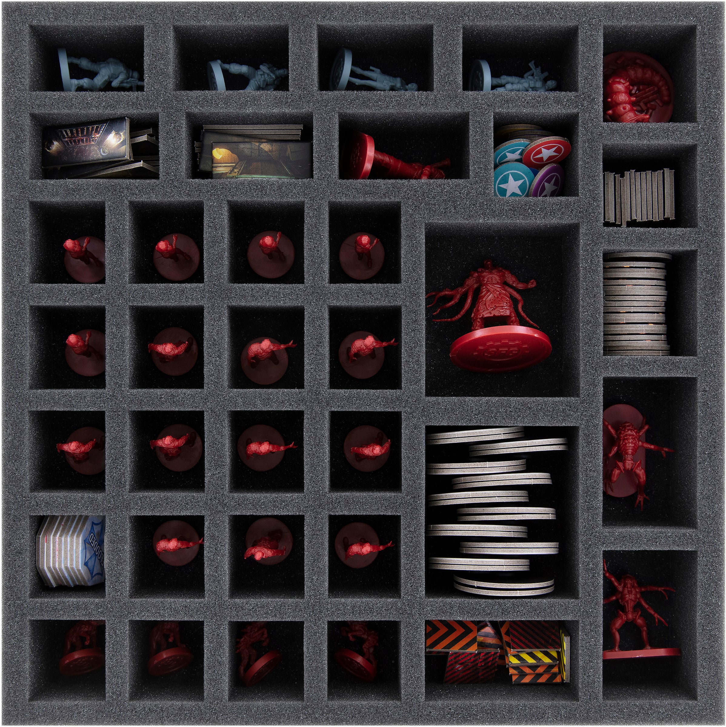 In der Brettspielumsetzung des Videospiels erwarten dich aufwändig modellierte Untote und wagemutige Helde. Wir können zwar nicht verhindern, das du ein grausames Ende findest, aber mit diesem Feldherr-Schaumstoff-Set, passend für den Brettspielkarton des Grundspiels in der Kickstarter Edition, können wir zumindest dafür sorgen, dass deine Miniaturen und dein Spielmaterial sicher und ordentlich aufbewahrt sind.
