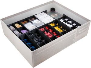 Hochwertige Aufbewahrungslösungen für Scythe sorgen dafür, dass Miniaturen, Ressourcenmarker und Karten sicher organisiert bleiben und der Aufbau des Spiels deutlich schneller gelingt.