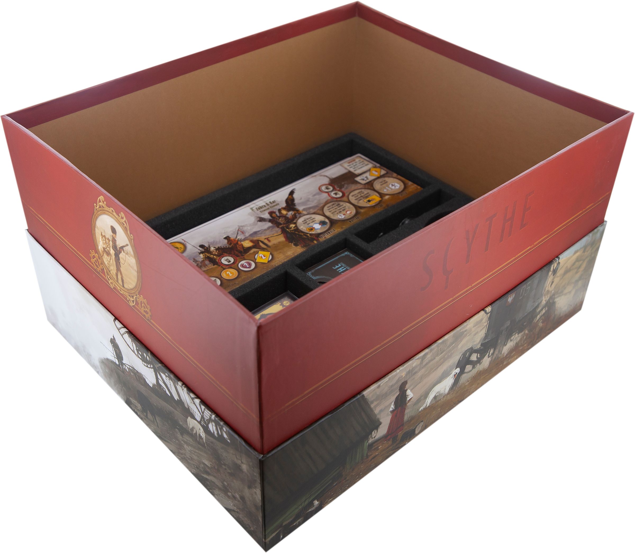 Mit der letzten Veröffentlichung der Erweiterungs-Trilogie ist deine Scythe-Kollektion endlich vollständig. Damit du bei der Fülle von Figuren, Markern, Meeples und Karten nicht die Übersicht verlierst und alles vernünftig in der großen Legendary Box verstauen kannst, haben wir hier das passende Schaumstoff-Set für dich.
