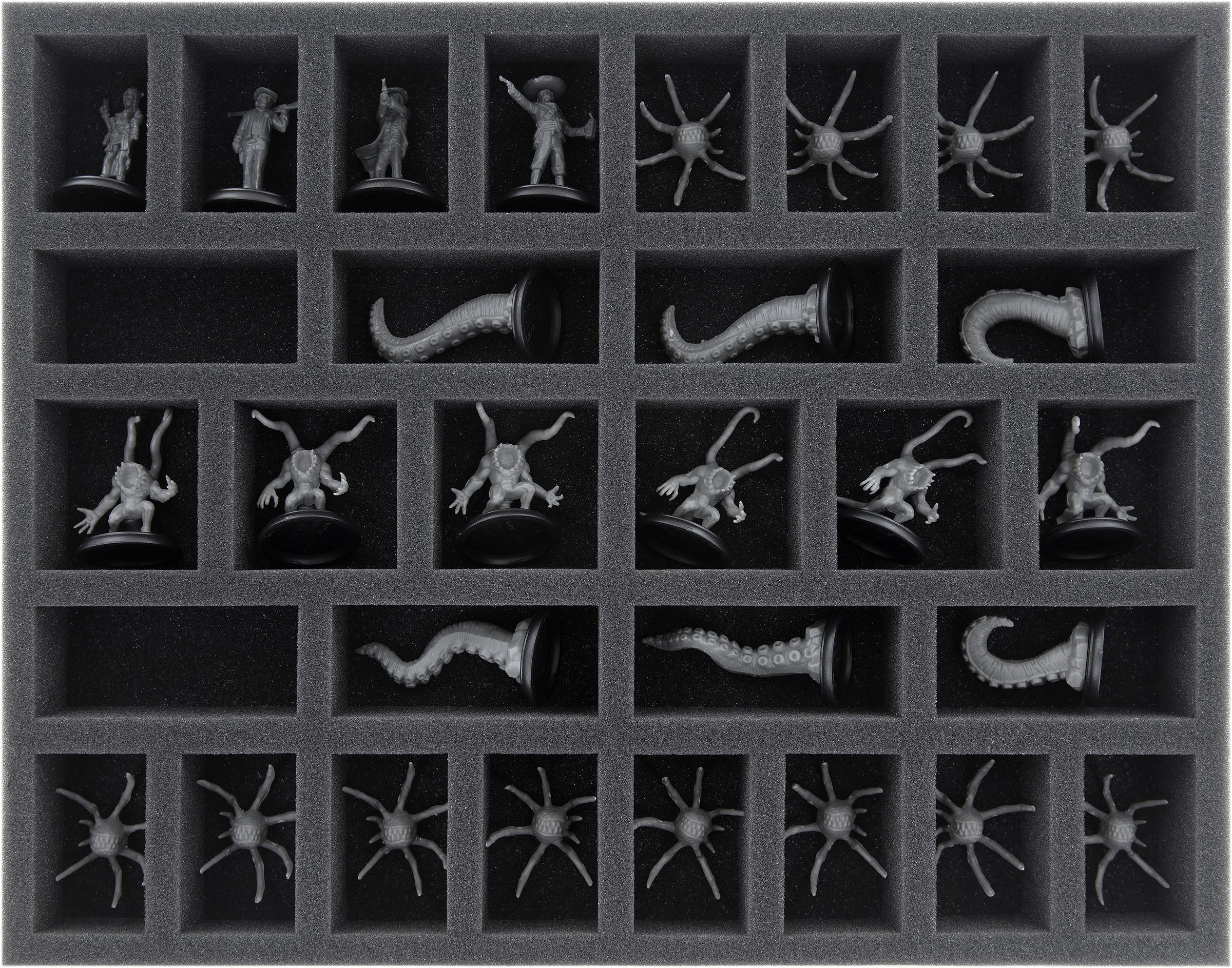 Das Insert ist z. B. ideal für Figuren aus dem Shadows of Brimstone: City of the Ancients Grundspiel, wie Bandido Hero, Stranglers, Tentacles oder Void Spiders.