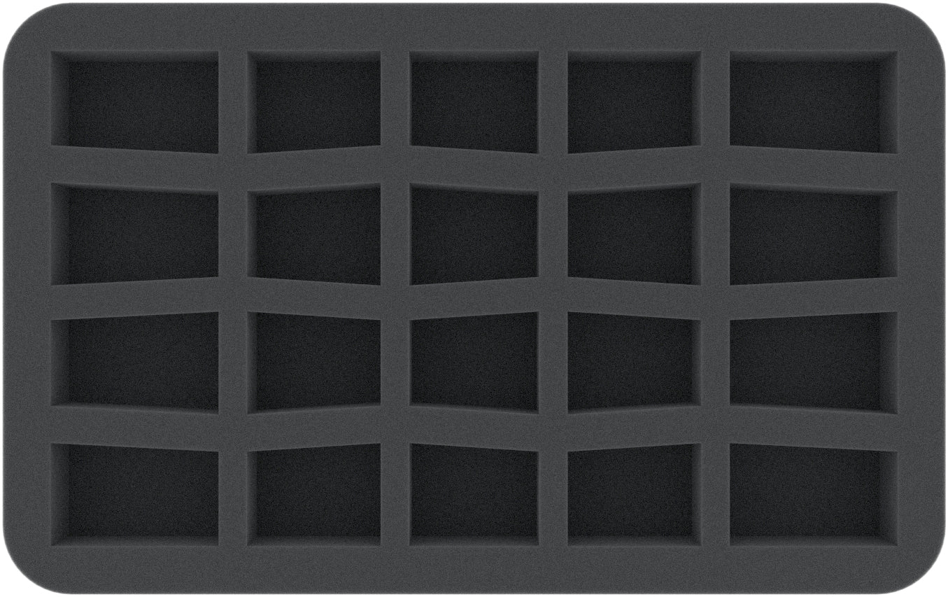 Diese Feldherr Schaumstoffeinlage verfügt über 20 Fächer zum sicheren und ordentlichen Aufbewahren von Miniaturen der Brettspielreihe "Shadows of Brimstone".