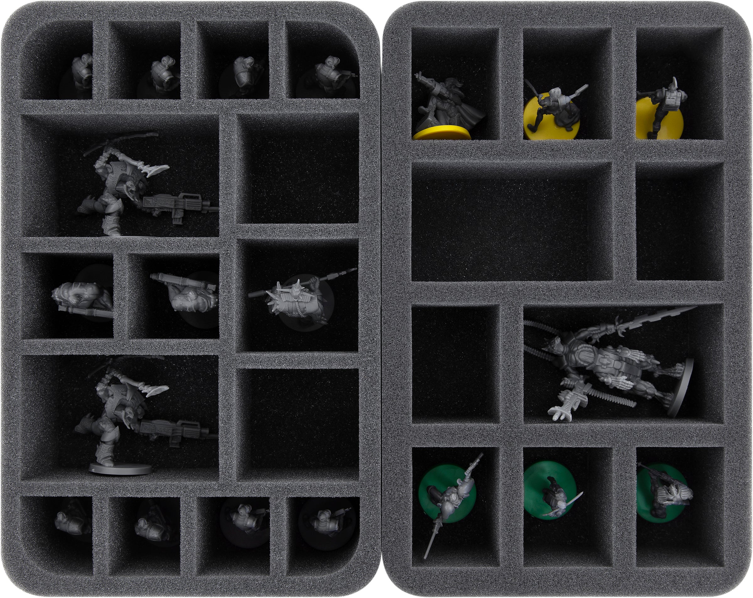 Die maßgeschneiderten Schaumstoffeinlagen, Taschen und Lagerboxen von Feldherr bieten praxiserprobten und zuverlässigen Schutz für deine Miniaturen, Sammelfiguren und andere wertvolle Gegenstände.