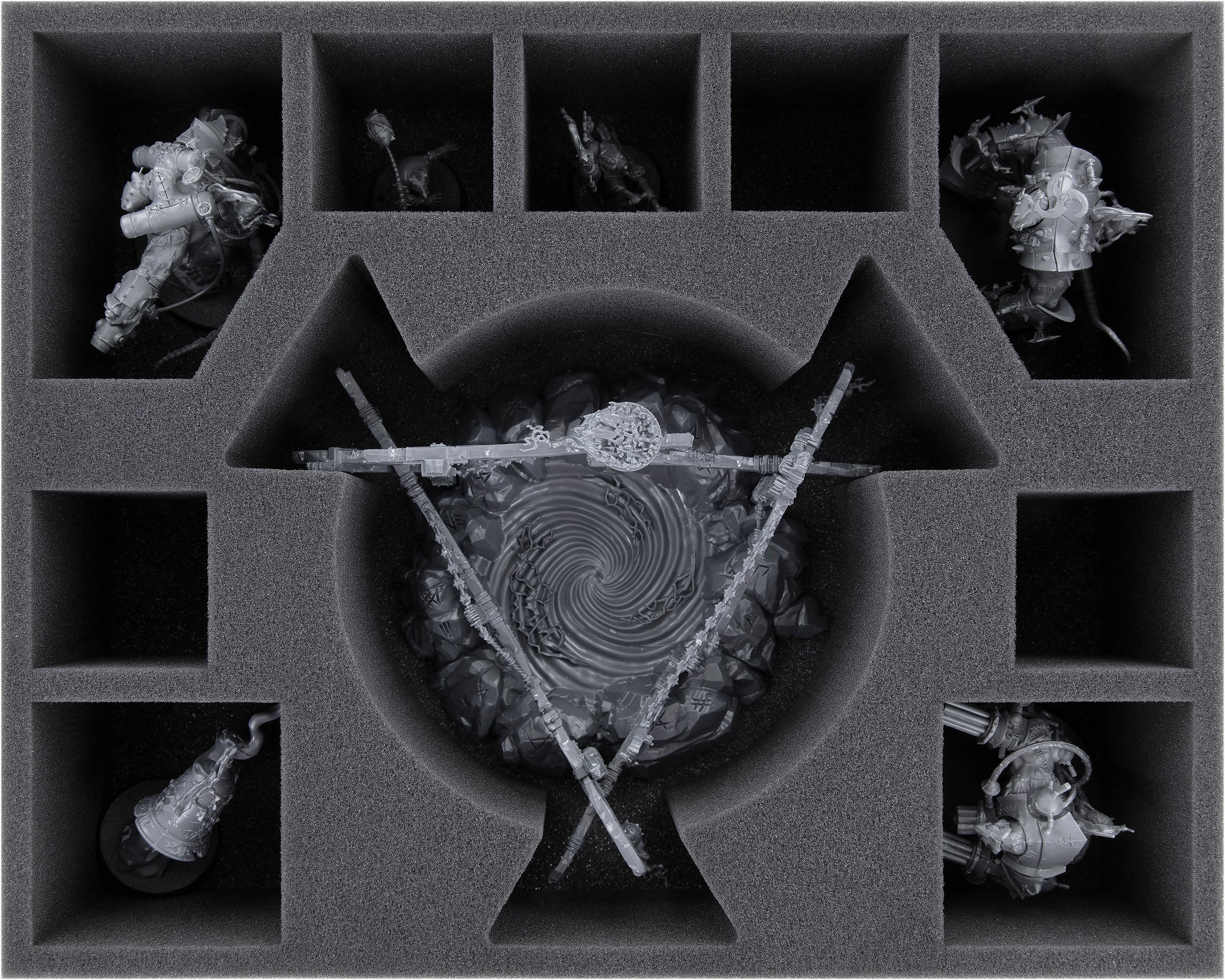- 3 Full-Size-Schaumstoffeinlagen mit je 10 Fächern für Gnawhole der Skaven, Warlock Bombardier, Storm Fiends, Doom-Flayers, Zwistklaues Schwarm der Skaven-Clans, Verminus oder Figuren mit ähnlichen Abmessungen (FS085A002)