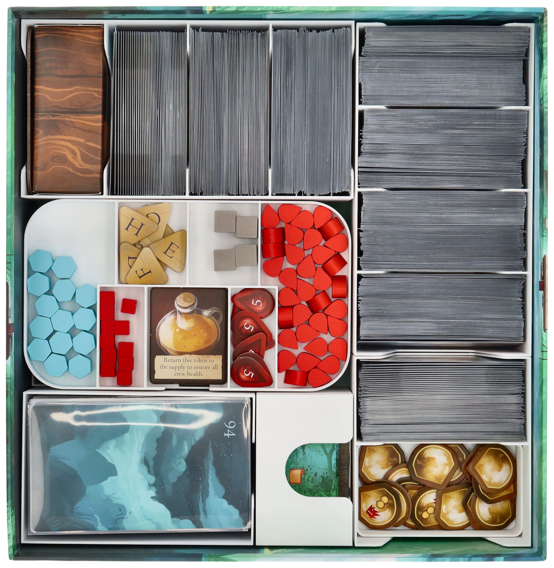 Während du den Weg nach Hause suchst, kümmern wir uns um Ordnung unter Deck. Unsere Inserts sorgen dafür, dass dein Spielmaterial stets ordentlich verstaut ist - in der Box und auf dem Tisch.