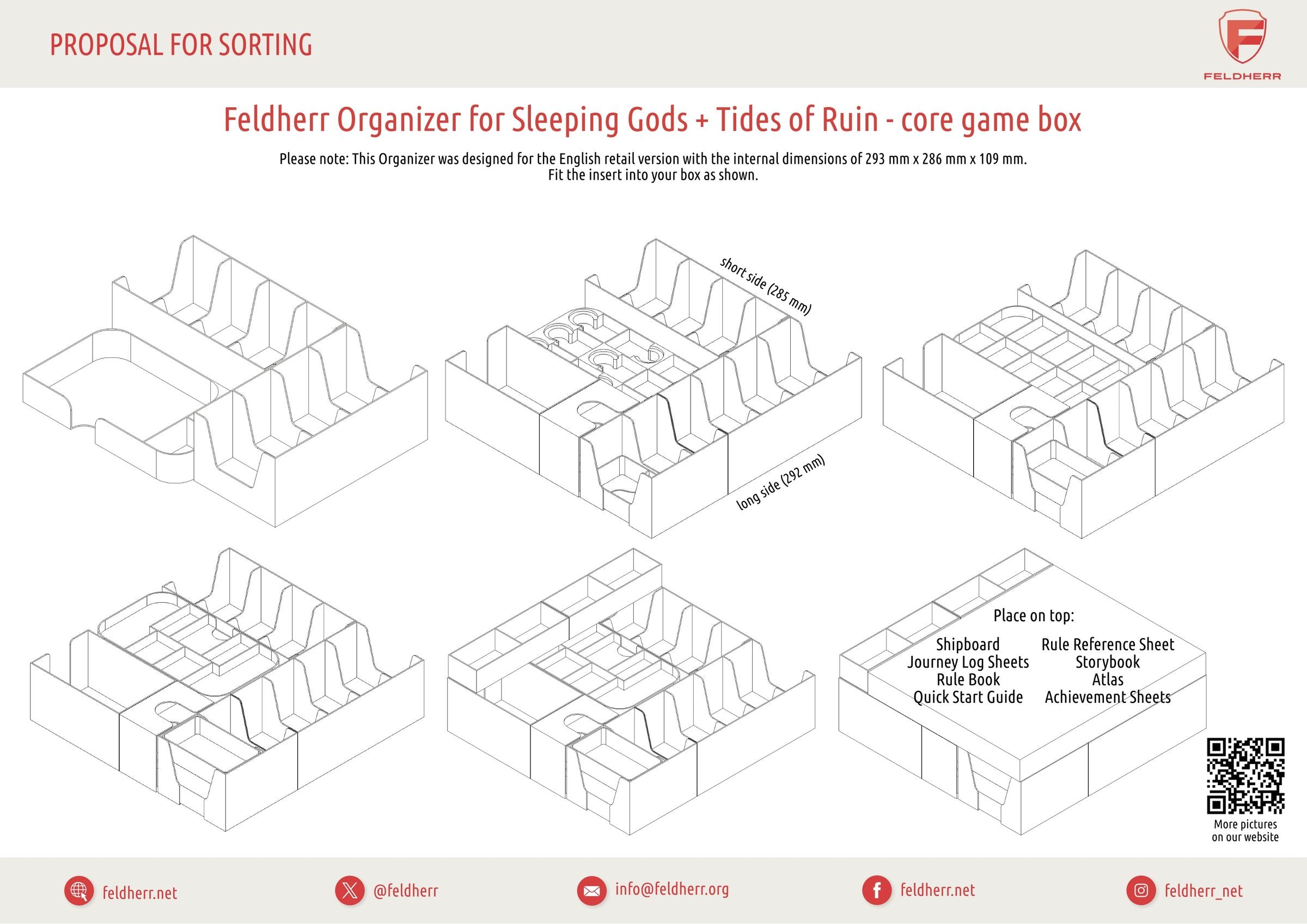 - Der Organizer aus Kunststoff passt genau in die originale “Sleeping Gods” Grundspielbox. Bitte beachten: Unsere Lösung wurde entworfen für die englische Retail-Version mit den Innenmaßen 293 mm x 286 mm x 109 mm.(Abmessungen des Organizers: ca. 292 mm x 285 mm x 102 mm).