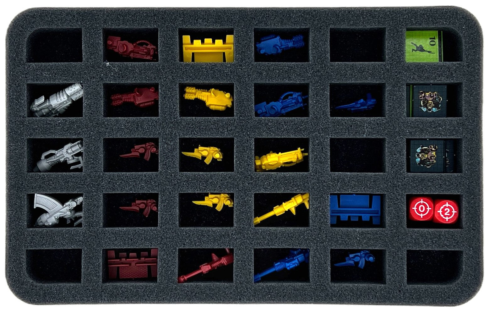 - 1 Half-Size Schaumstoffeinlage mit Waffenoptionen, Schwere Waffenoptionen, Dreadnought Waffenoptionen und Spielmaterial (HSHJ030BO)