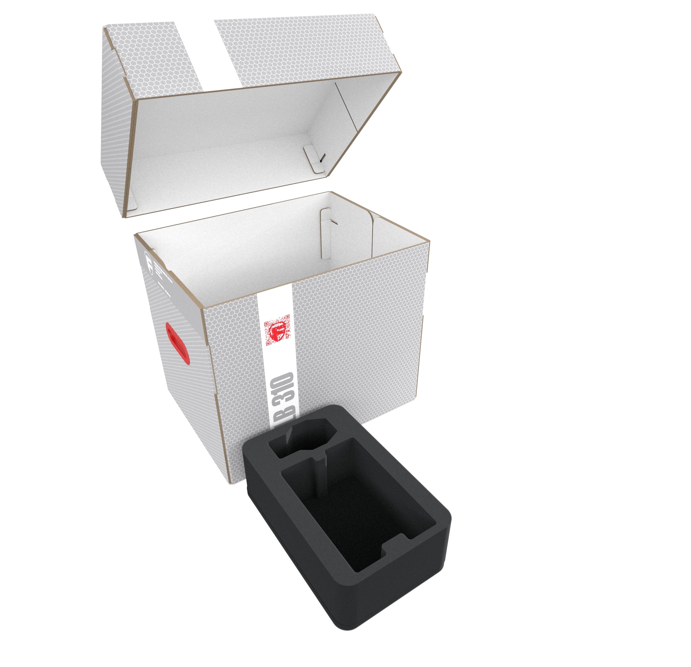 Die Lagerbox FSLB310 besteht aus beschichtetem, doppelwelligem Karton und ist damit einerseits sehr leicht und dabei trotzdem stabil. Der aufsetzbare Deckel schützt den Inhalt zuverlässig vor Staub und anderen äußeren Einflüssen. Mit den beiden kunststoffverstärkten Tragegriffen an den Seiten lässt sich die Box bequem transportieren.