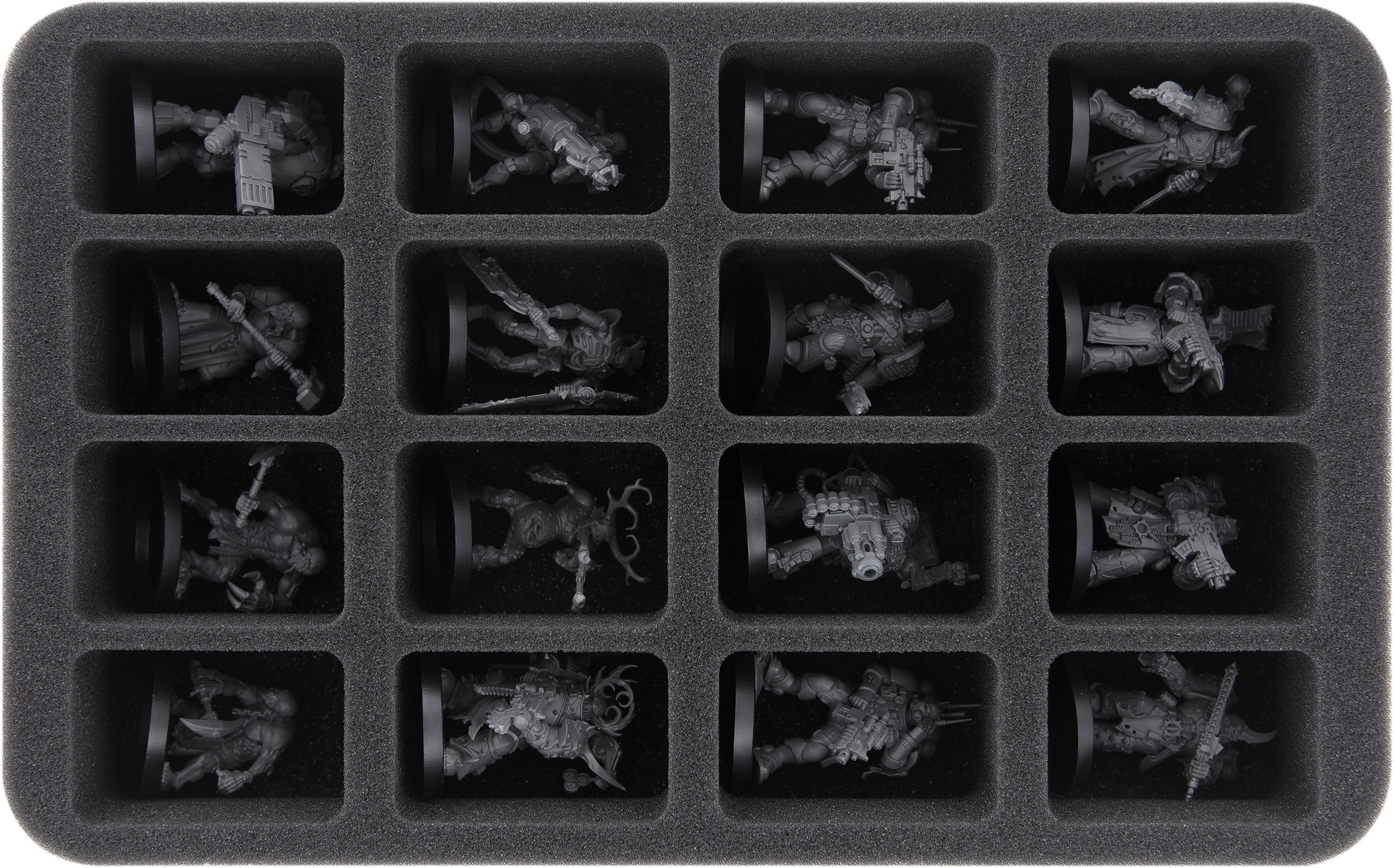 - 1 Half-Size-Schaumstoffeinlage mit 12 Fächern für bullige Miniaturen wie Terminatoren+ Kultisten mit schwere Waffen (HS050A094)